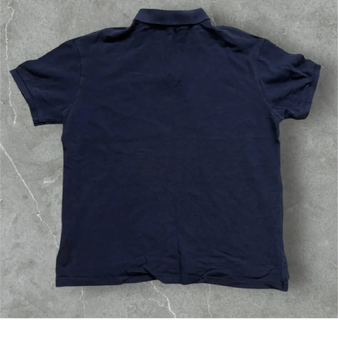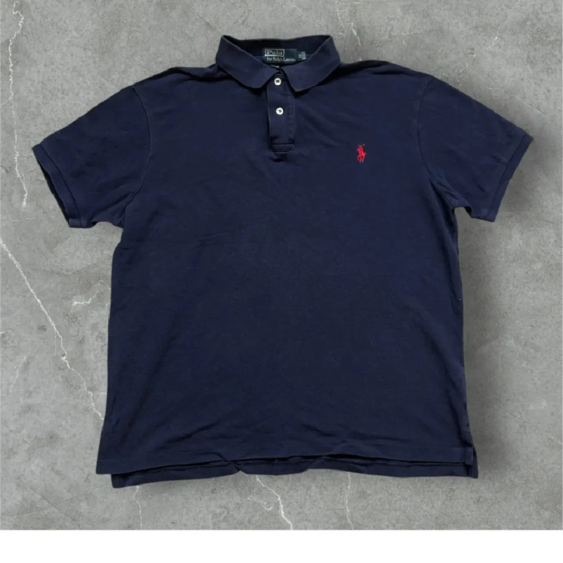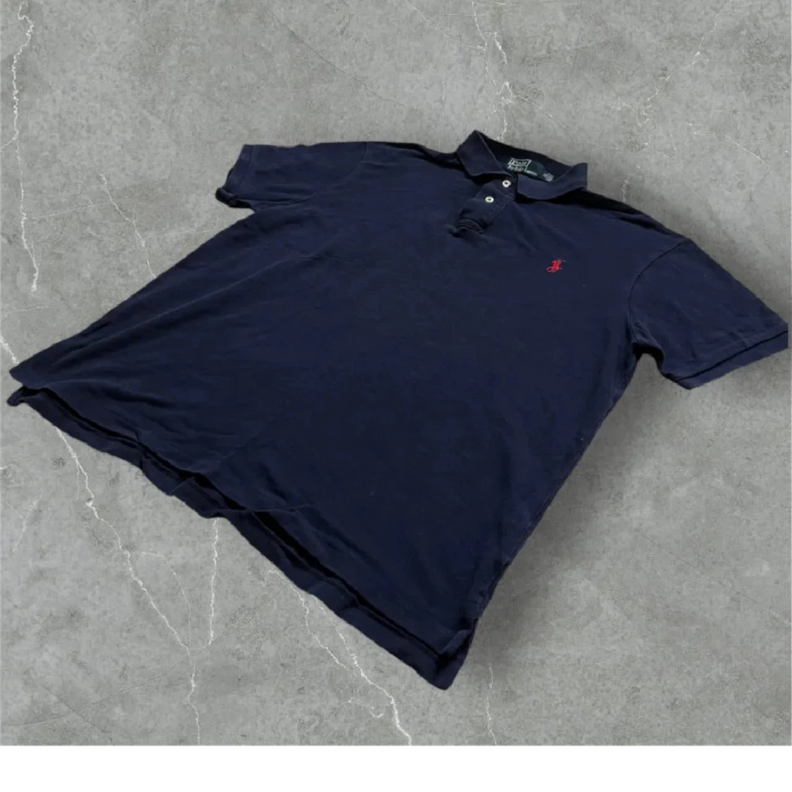Klassisk mörkblå pikétröja från Ralph Lauren med korta ärmar och krage. Tröjan har två knappar framtill och den ikoniska röda loggan broderad på bröstet. Perfekt för en stilren och avslappnad look.