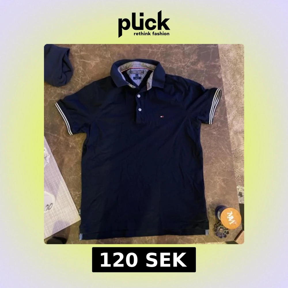 Snygg mörkblå pikétröja från Tommy Hilfiger med klassisk krage och knappar framtill. Tröjan har korta ärmar med randiga detaljer i vitt och blått. Perfekt för en stilren look.