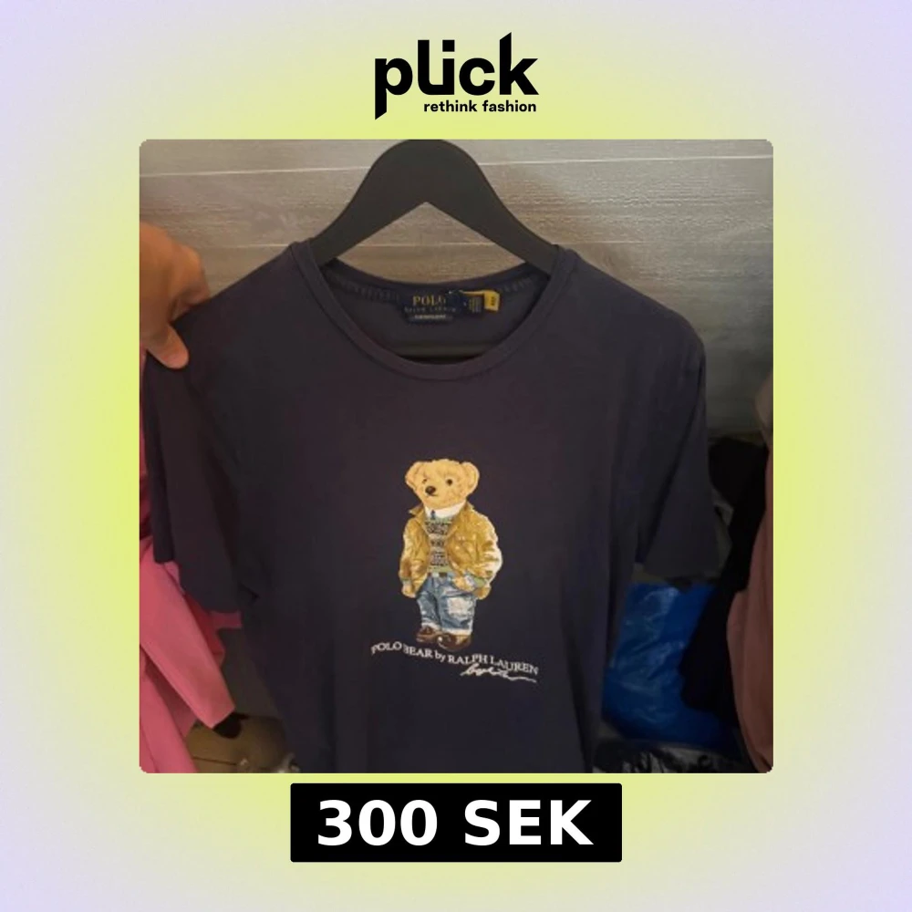 Snygg mörkblå t-shirt från Polo Ralph Lauren med ikoniskt Polo Bear-tryck på bröstet. Modellen är custom slim fit och har rund hals och korta ärmar. Litet hål i nacken men man ser de knappt annars är det mycket bra skick