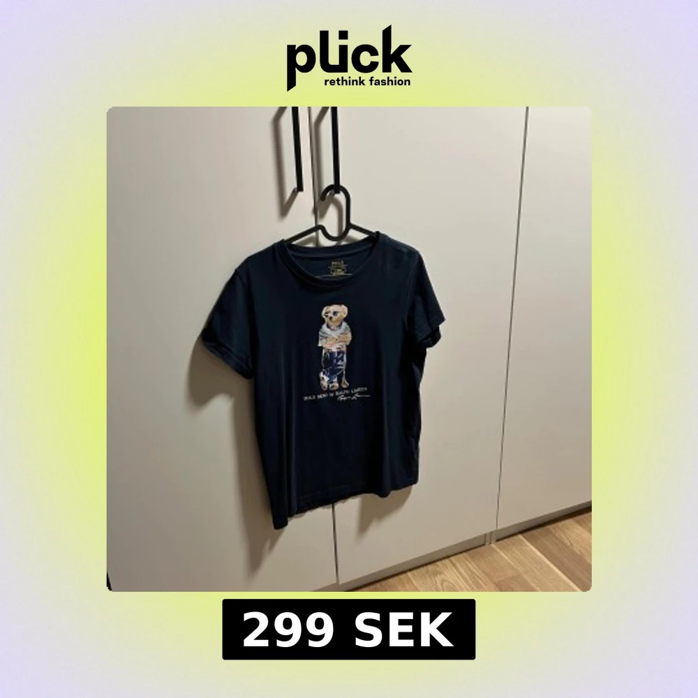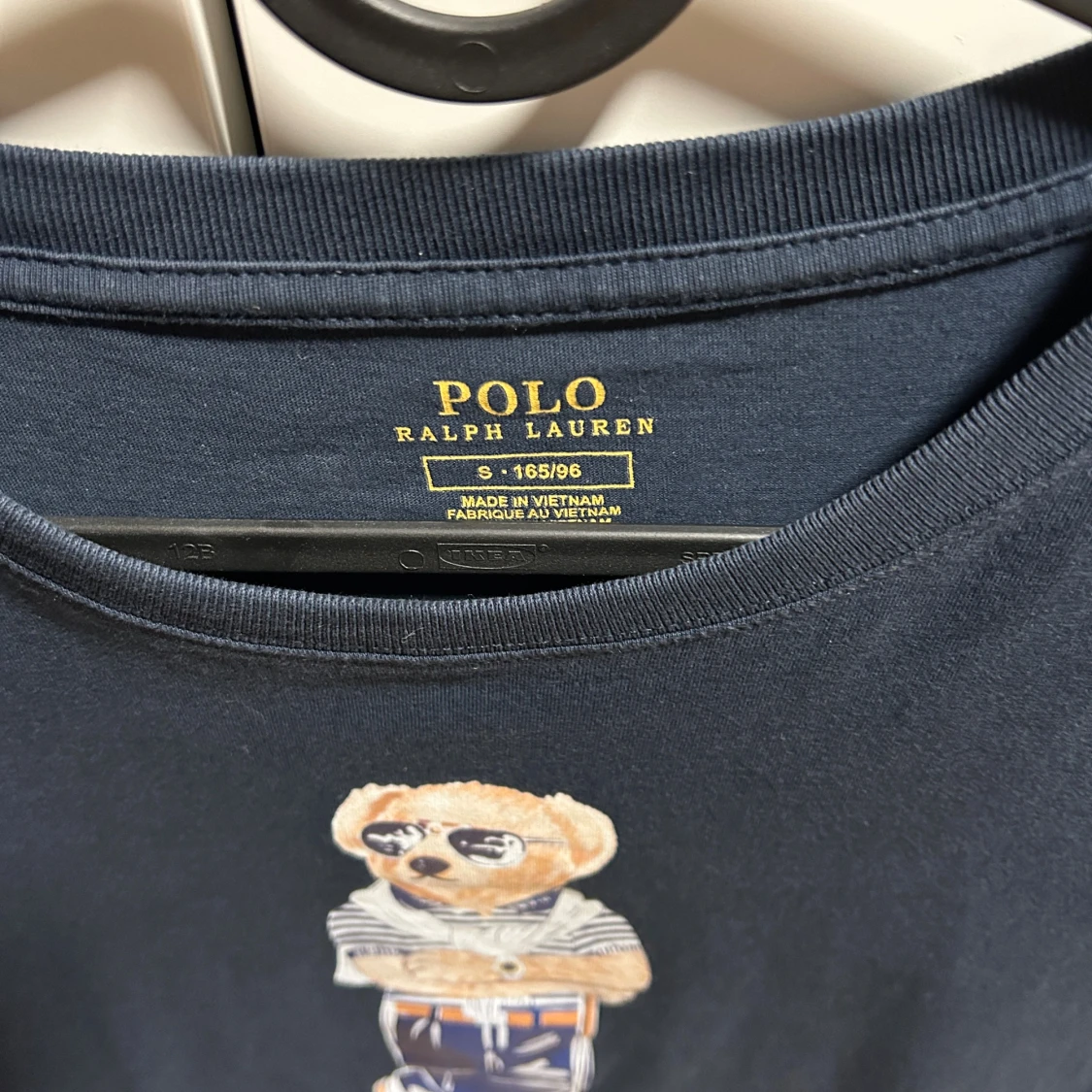 Snygg mörkblå t-shirt från Polo Ralph Lauren med ikoniskt björntryck på bröstet. Klassisk rund hals och korta ärmar. Tillverkad i mjuk bomull som känns skön mot huden. Perfekt för dig som gillar streetstyle och vill sticka ut lite extra.