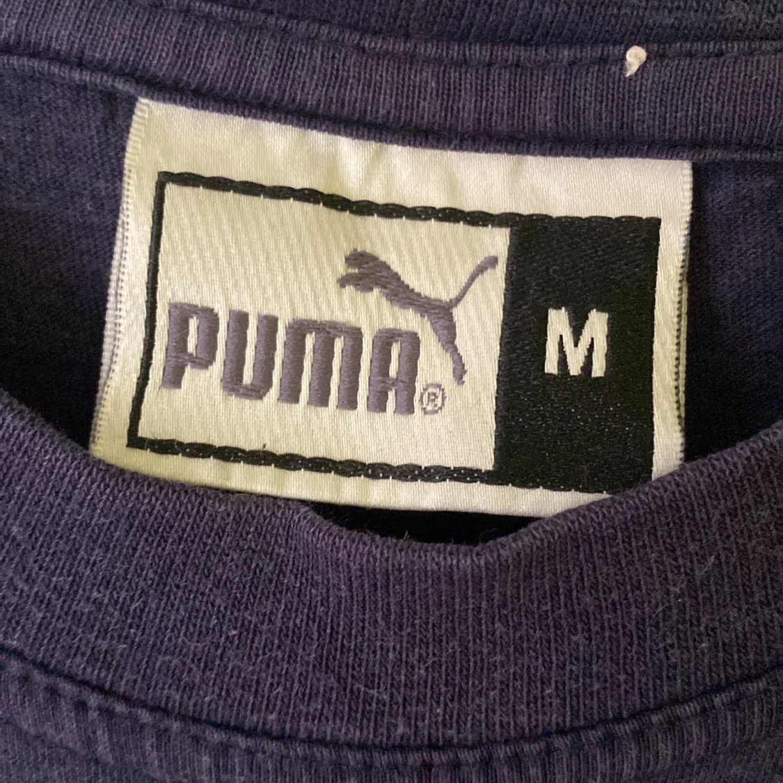 Snygg mörkblå t-shirt från Puma med stor vit konturerad logga på bröstet. Klassisk passform och rund halsringning, perfekt för en sportig och avslappnad stil. Tillverkad i mjuk bomull för skön känsla hela dagen.