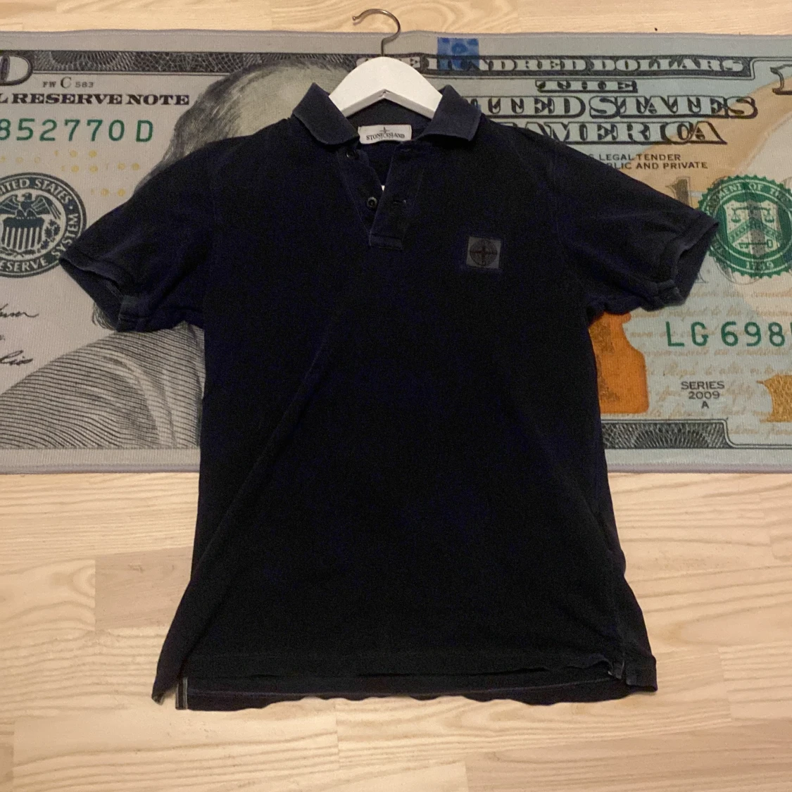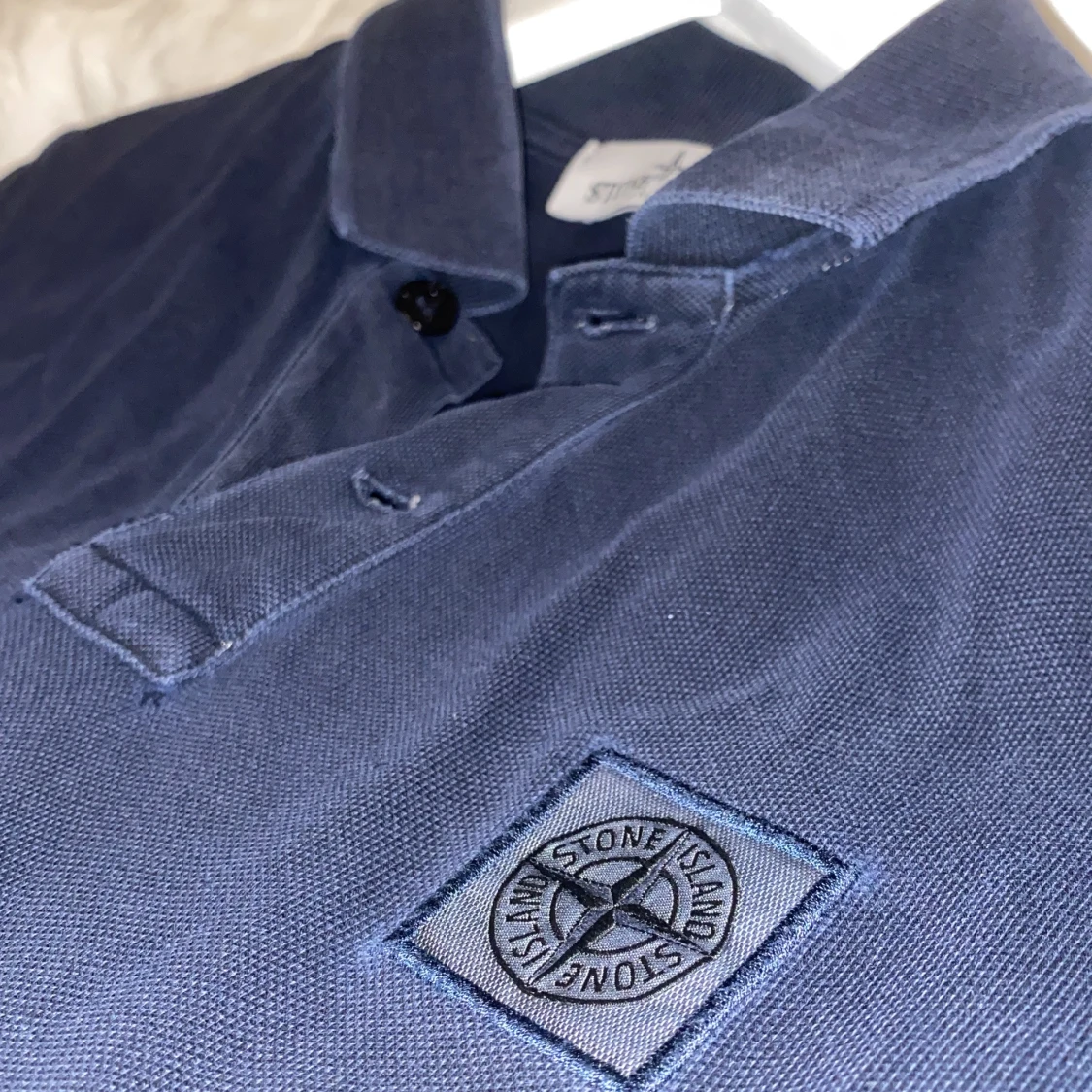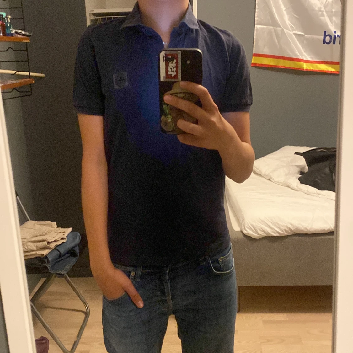 Säljer en mörkblå pikétröja från Stone Island Junior. Klassisk krage, det är bra skick bara två mini hål som ni ser på bild 4 (inget som märks) killen på bild 3 är 170 och sitter bra (passar dig som är 160-170) det kommer med en extra knapp! Hör av dig vid minsta fundering !