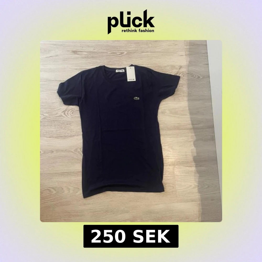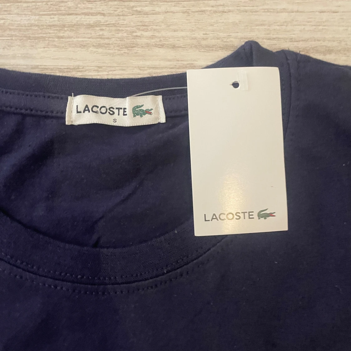Snygg mörkblå t-shirt från Lacoste med klassisk krokodillogga broderad på bröstet. T-shirten har rund halsringning och korta ärmar. Tillverkad i mjuk bomull som känns skön mot huden. Perfekt för en clean och stilren look. Tyvärr en liten fläck