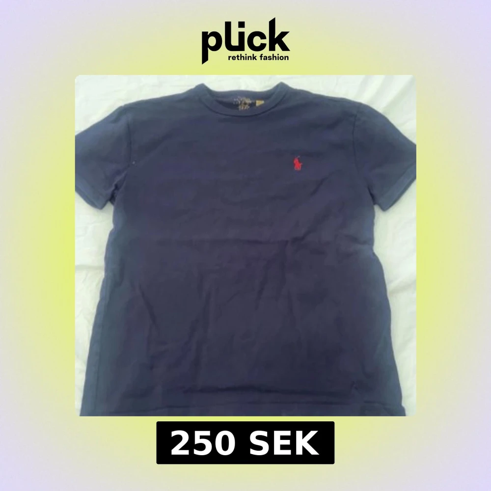 Säljer en klassisk mörkblå t-shirt från Ralph Lauren med korta ärmar och det ikoniska röda broderade logotypen på bröstet. Perfekt för en stilren och avslappnad look.