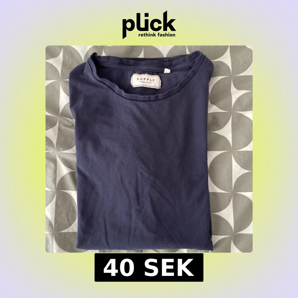 Säljer En stilren mörkblå t-shirt från Supply Project i storlek S. T-shirten har klassisk rund halsringning och korta ärmar. Tillverkad i mjuk bomull som känns skön mot huden. Perfekt för en clean och enkel look. Tishan är i ett fint skick men lite skrynklig men då kan man använda ett strykjärn. Hojta till vid övriga funderingar 👍.