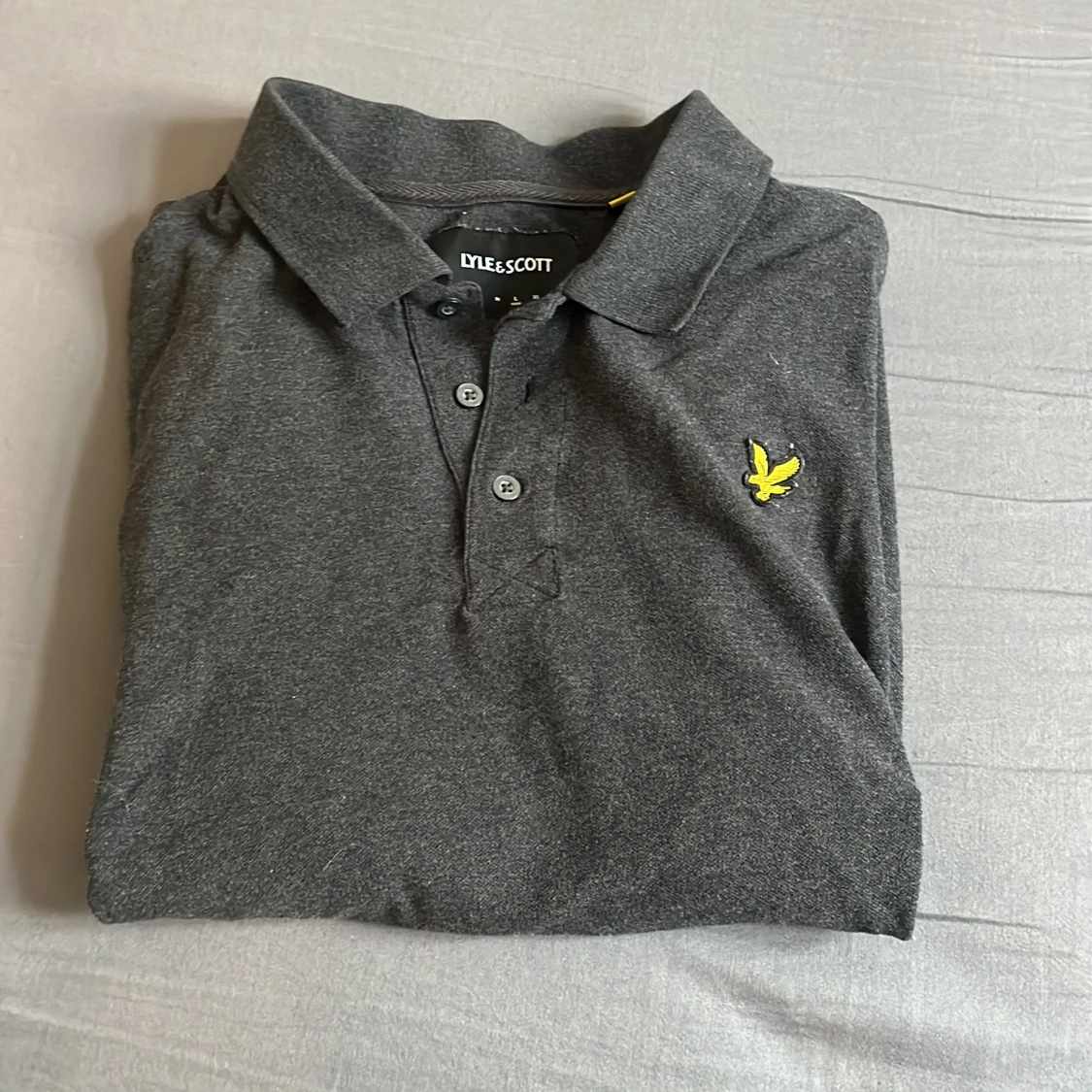 Snygg mörkgrå pikétröja från Lyle & Scott med klassisk krage och tre knappar framtill. Tröjan har det ikoniska gula fågel-loggan broderad på bröstet. Tillverkad i mjuk bomull och passar perfekt till en avslappnad men stilren look. Hör av er vid minsta lilla fråga.