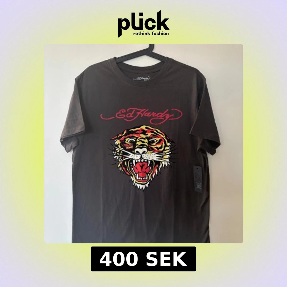 Snygg grå t-shirt från Ed Hardy med tigertryck. Ser svart ut men är väldigt mörkgrå🩶