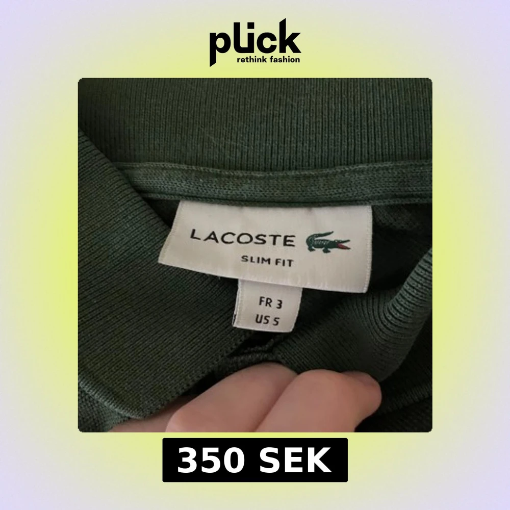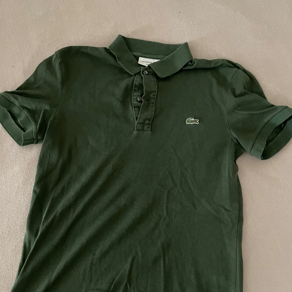 Snygg mörkgrön pikétröja från Lacoste i slim fit-modell. Klassisk krage, korta ärmar och knappar framtill. Storlek S men sitter som en Xs. 200kr om man hämtar upp i Malmö! Nypris är 1000-1300