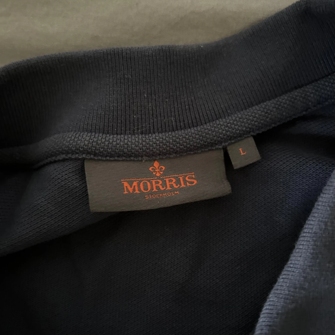 Säljer en klassisk mörkblå pikétröja från Morris med korta ärmar och krage. Tröjan har knappar framtill och en broderad logga på bröstet. Perfekt för en stilren och avslappnad look. Jag har bara använt denna piken 3 gånger.
