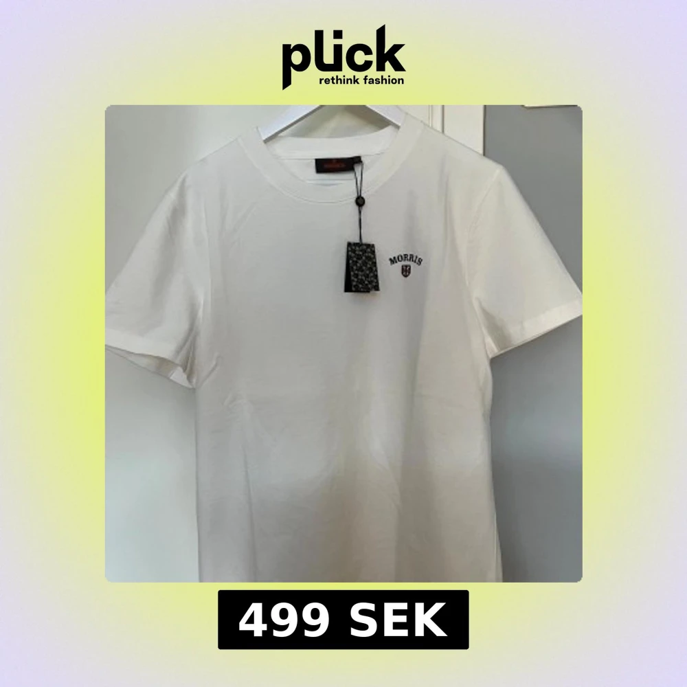 Säljer en stilren vit t-shirt från Morris med en liten broderad logga på bröstet. T-shirten är kortärmad och tillverkad i mjuk bomull. Perfekt för en avslappnad look.