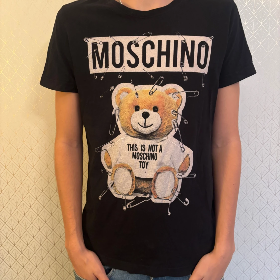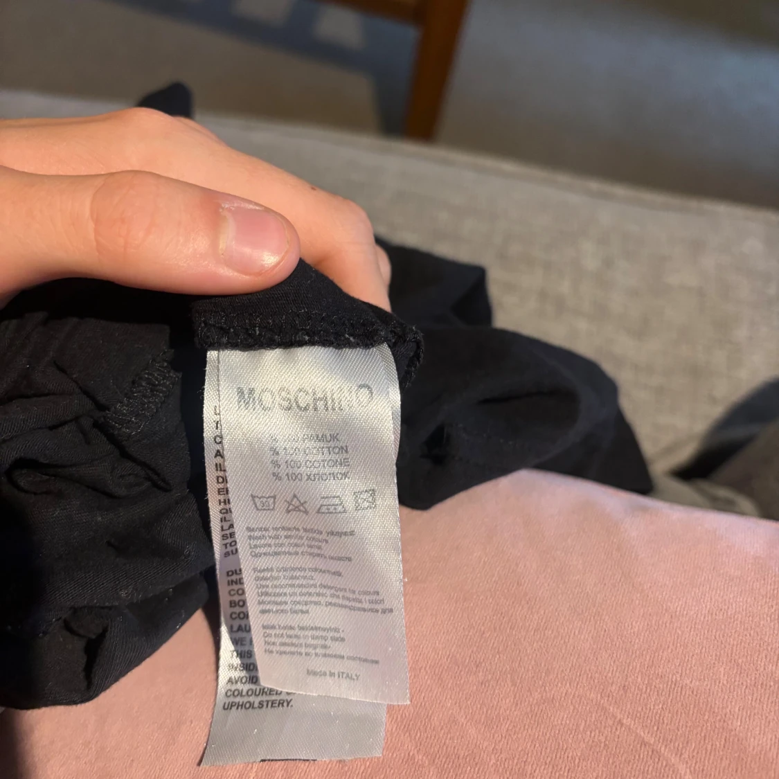 Hej säljer denna sjukt snygga moschino tshirten. Denna är i sjukt bra skick. Hör av er vid några frågor.
