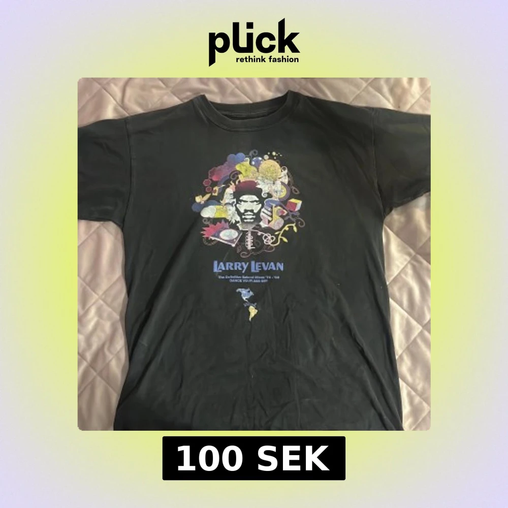 Svart bandtröja med färgglatt tryck av Larry Levan och olika grafiska element på bröstet. Texten 'Larry Levan' syns tydligt under motivet. Klassisk passform och rund halsringning. Perfekt för dig som gillar musik och streetwear.
