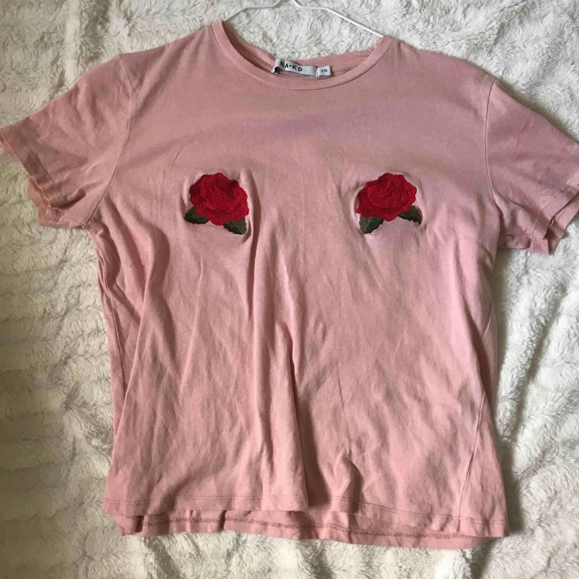 T-shirt med rosor på brösten, ifrån na-kd Kika gärna in på min profil, har massor av annonser ute!