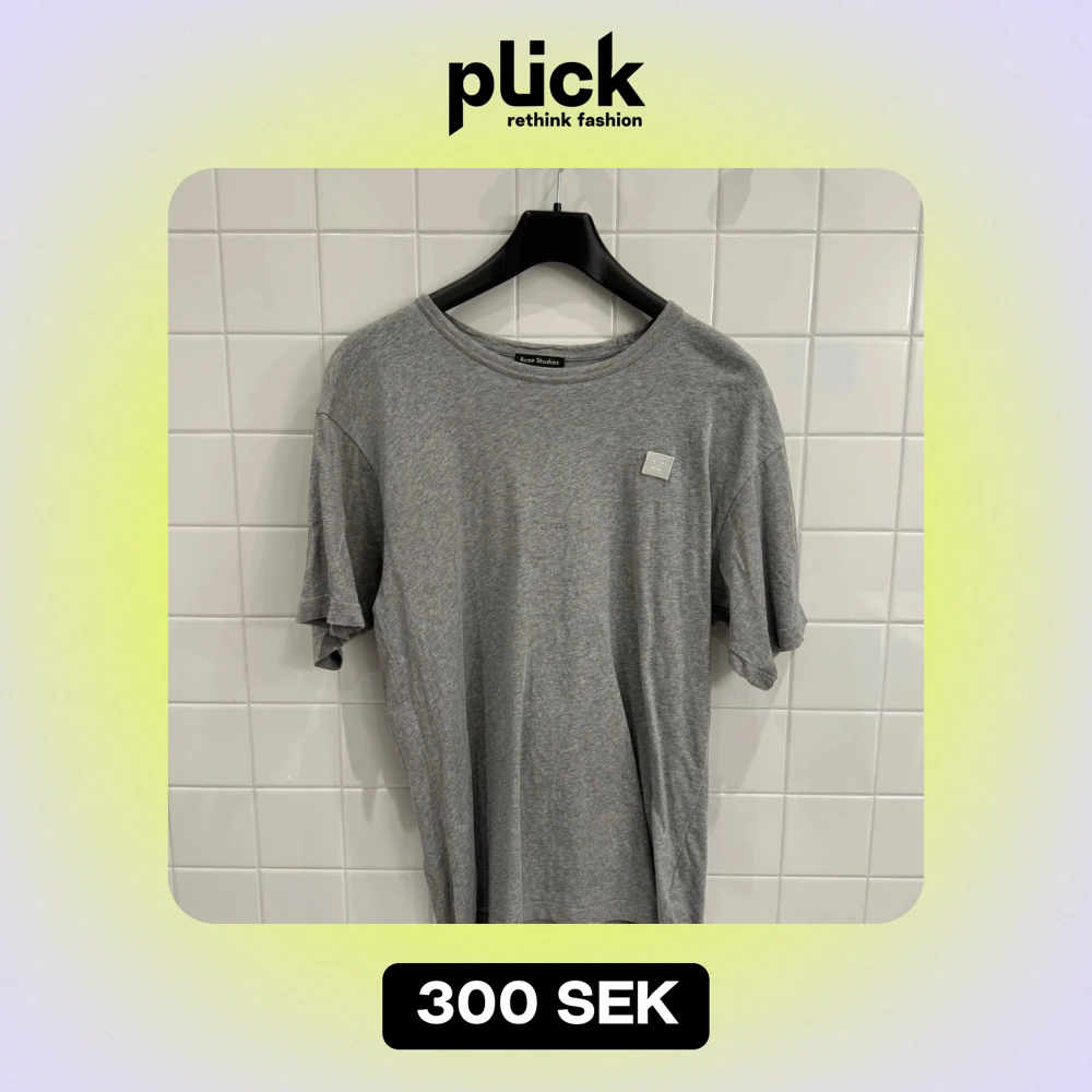 Säljer en stilren grå t-shirt från Acne Studios i storlek L. Den är gjord av mjuk bomull och har en liten broderad detalj på bröstet. Perfekt för en avslappnad look, oavsett om det är till vardags eller en chill fest. T-shirten är i mycket bra skick och redo för en ny ägare!