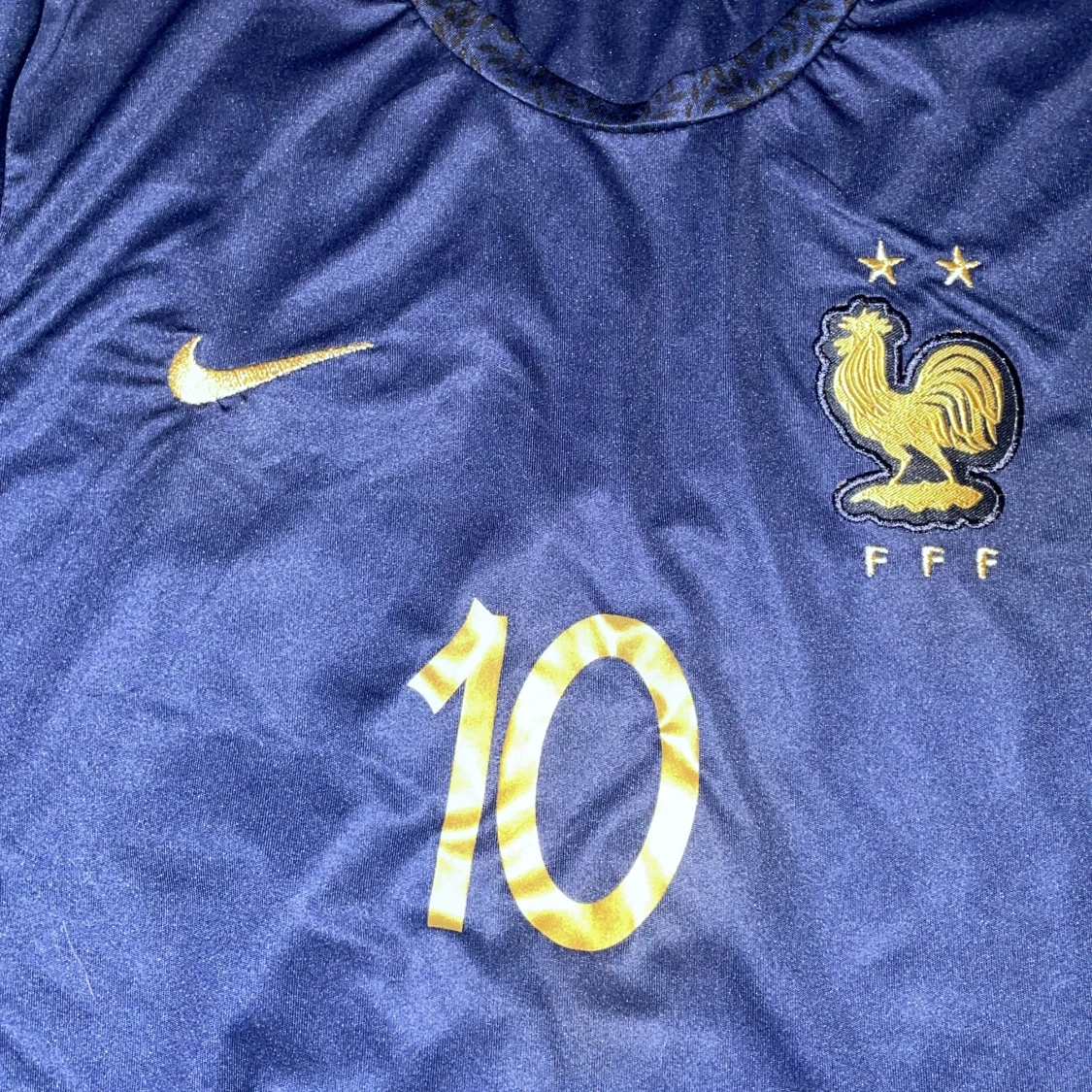 Snygg blå fotbollströja från Nike med guldiga detaljer och nummer 10. Tröjan har korta ärmar och är tillverkad i Dri-FIT-material för optimal komfort. Perfekt för fotbollsfans!