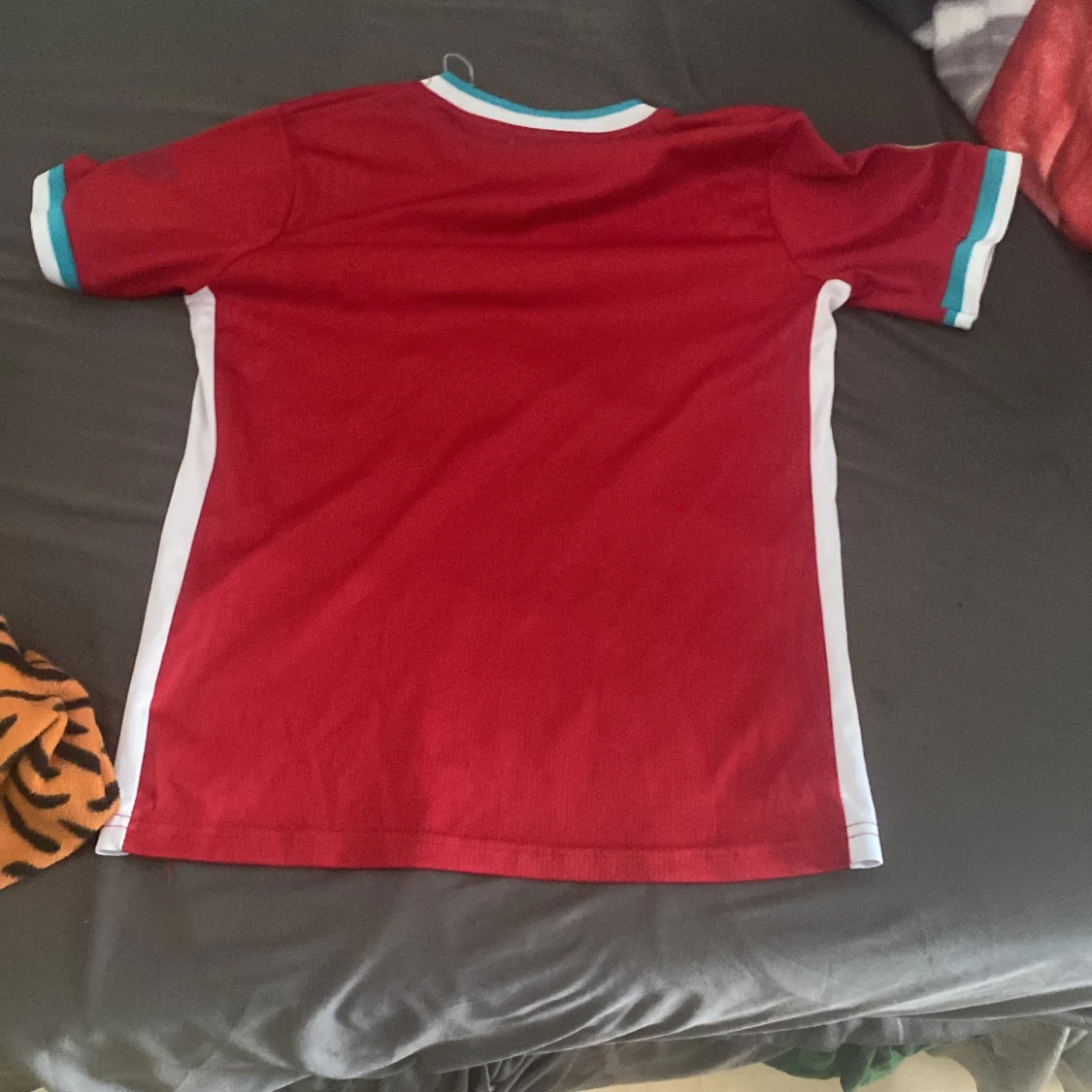 Liverpool FC matchtröja i rött med vita och turkosa detaljer på ärmslut och krage. Tröjan har klubbmärke och Nike-logga på bröstet samt FIFA-märke. Tillverkad i lätt och ventilerande material, perfekt för fotboll eller supporterliv.
