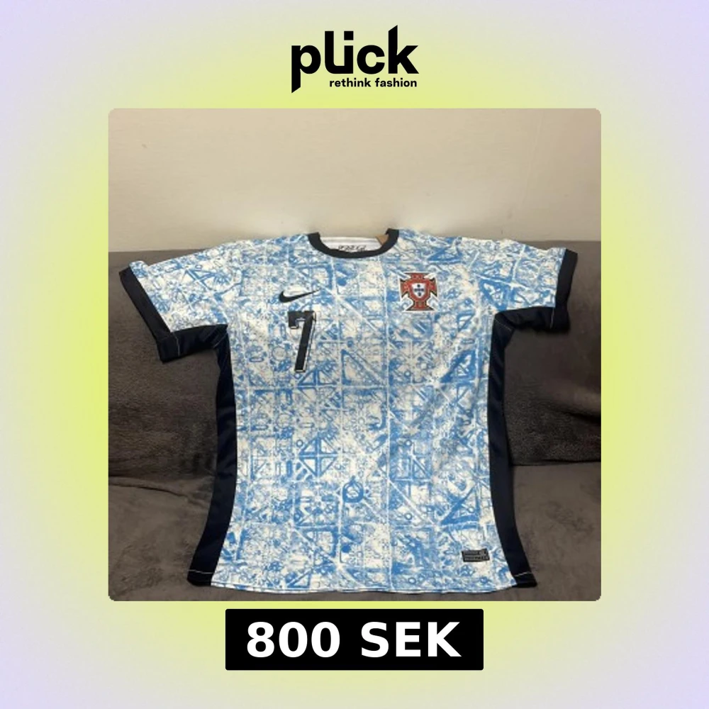 Säljer en unik Portugal fotbollströja med de finaste färgarna. Tröjan har korta ärmar och nummer 7 på både fram- och baksidan. Perfekt för fotbollsfans som vill sticka ut! Även Ronaldo på ryggen!