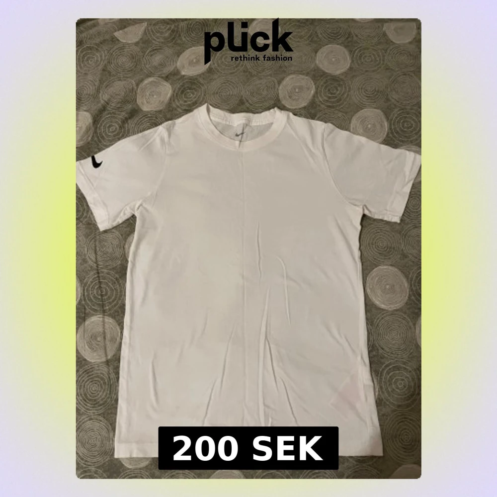 Vit t-shirt från Nike i storlek L, med klassisk rund hals och korta ärmar. T-shirten har en svart Nike Swoosh-logga tryckt på vänster ärm. Tillverkad i mjuk bomull som känns skön mot huden. Enkel och stilren design som funkar till det mesta.