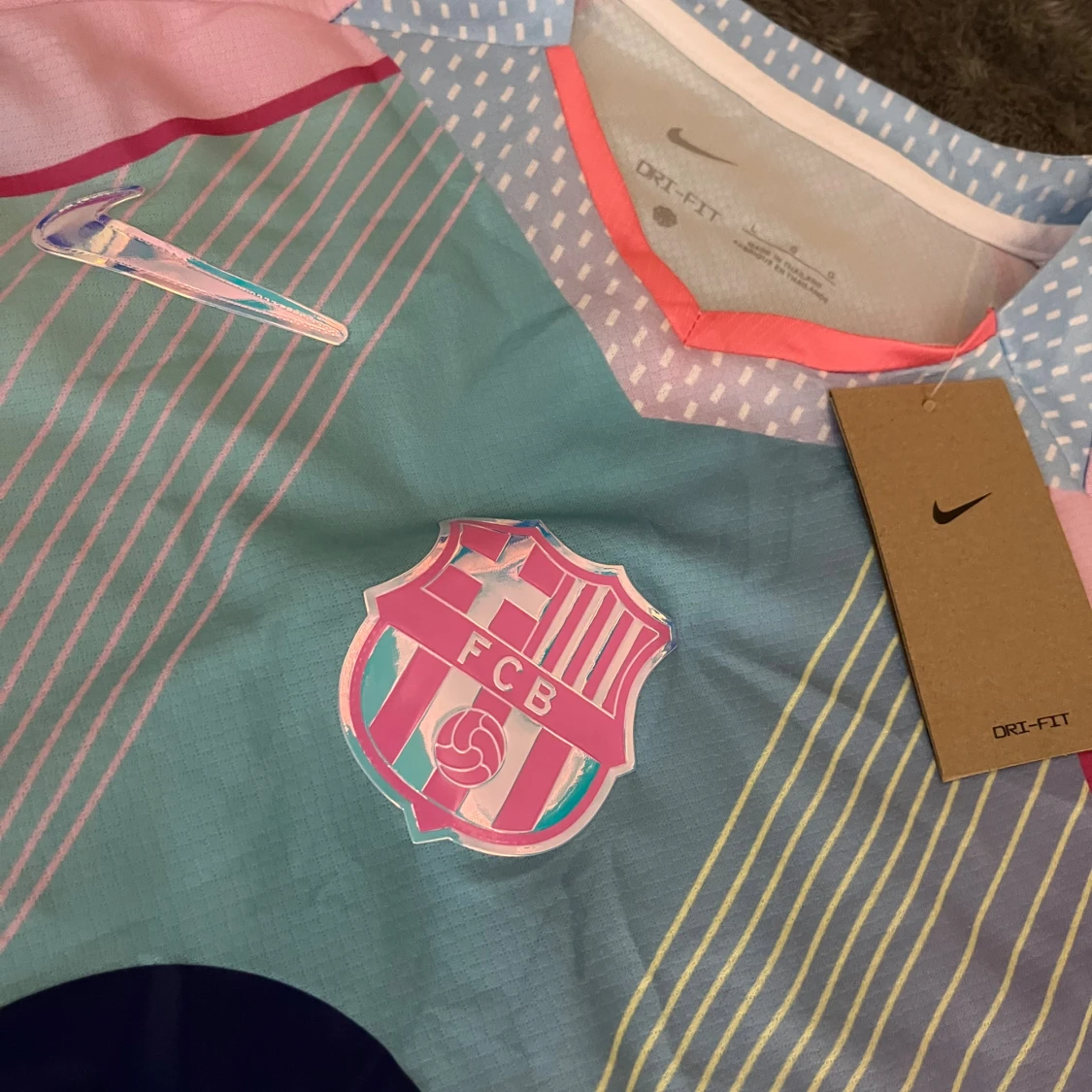 Snyggt blå o rosa Barcelona fotbollströja, aldrig använd med tag kvar, vid frågor skriv till mig, pris kan diskuteras!