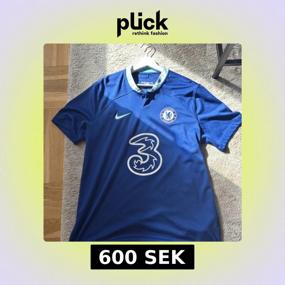 Chelsea FC hemmatröja från Nike med Mason Mount och nummer 19 på ryggen. Klassisk blå färg, kortärmad och tillverkad i Dri-FIT-material som andas. Stort vitt 3-logo på bröstet och klubbmärke på vänster sida. Snygg detalj med mönstrad krage.