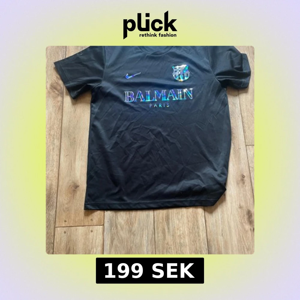 Snygg svart fotbollströja från Nike med Balmain Paris-tryck och holografiska detaljer på bröstet. Tröjan har korta ärmar och är tillverkad i lätt och ventilerande material (Nike Aeroswift). Perfekt för dig som vill sticka ut på planen eller gatan.