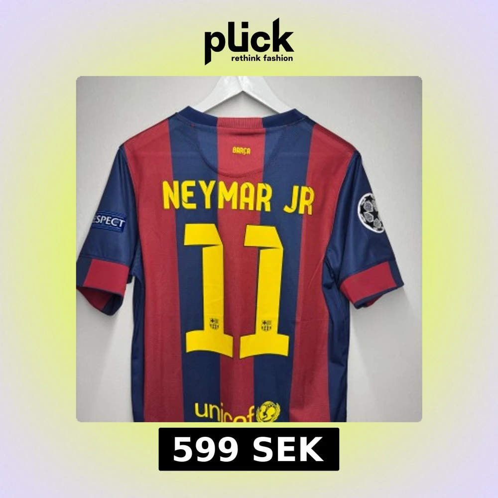 Säljer en FC Barcelona fotbollströja med Neymar Jr på ryggen. Den har Champions League-märken på ärmarna (inte använd utan bara upphängd på en galje i mitt rum) Tröjan är väldigt unik och exklusiv ifrån barcelonas Treble år. (Ingen aning om hur äkta den är men kvalitèn är sjukt obeskrivlig som ni ser och samma med all dess material)