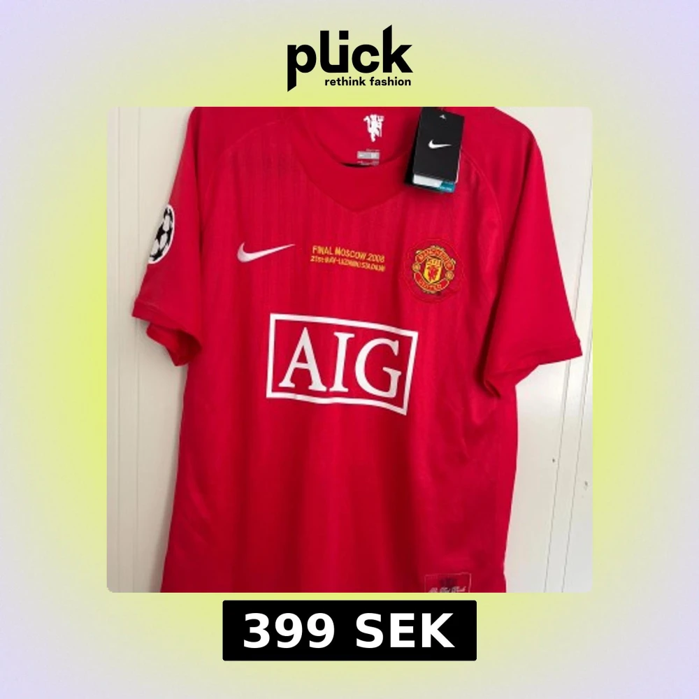 Manchester Uniteds officiella matchtröja från Champions League-finalen i Moskva 2008. Röd med broderat klubbmärke, AIG-logga och Nike swoosh. Kortärmad, tillverkad i lätt Dri-FIT material som andas. Champions League-märke på ärmen och detaljer i gult och vitt.