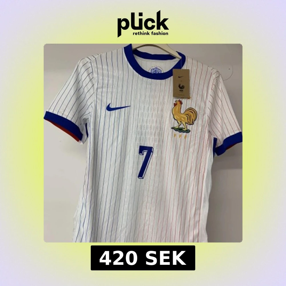 Snygg vit fotbollströja från Nike med tunna blå och röda ränder, blå krage och ärmslut med röda detaljer. Franska landslagets emblem med tupp på bröstet och Griezmanns namn samt nummer 7 på ryggen. Tillverkad i lätt och ventilerande polyester.