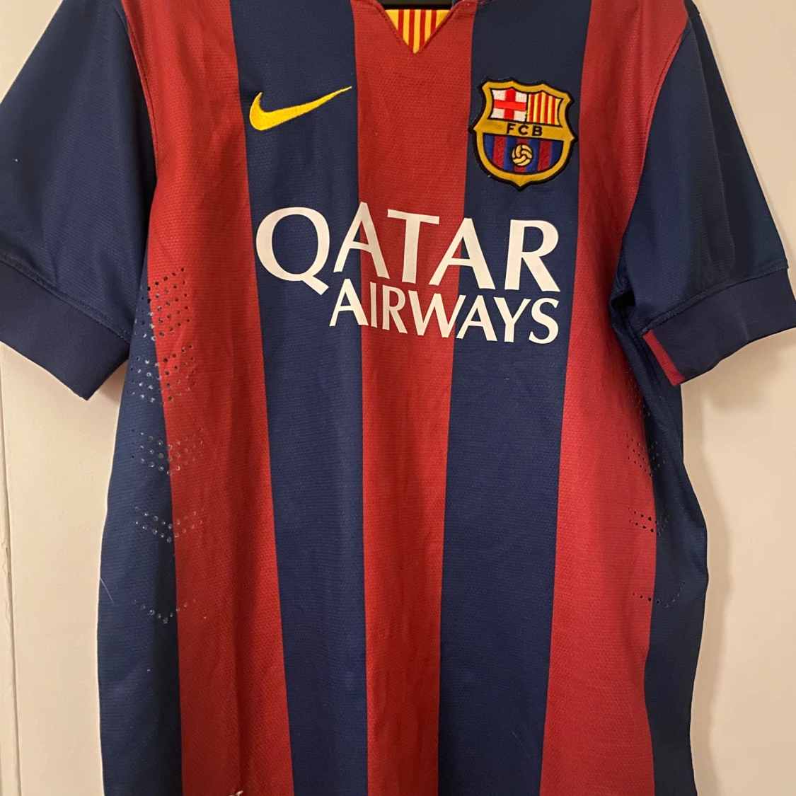 Säljer en officiell FC Barcelona Neymar Jr matchtröja från Nike i storlek M. Tröjan är blå och röd med gula detaljer, har klassiska vertikala ränder, klubbmärke, Qatar Airways-tryck och nummer 11 på ryggen. Tillverkad i lätt Dri-Fit material för bästa komfort.