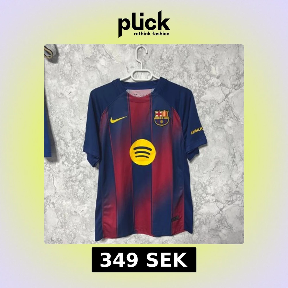 Säljer en officiell FC Barcelona matchtröja från Nike med Lamine Yamal och nummer 10 på ryggen. Tröjan är blå och röd med gula detaljer, klubbmärke och sponsortryck. Tillverkad i lätt Dri-FIT-material som andas, perfekt för fotboll eller samling.