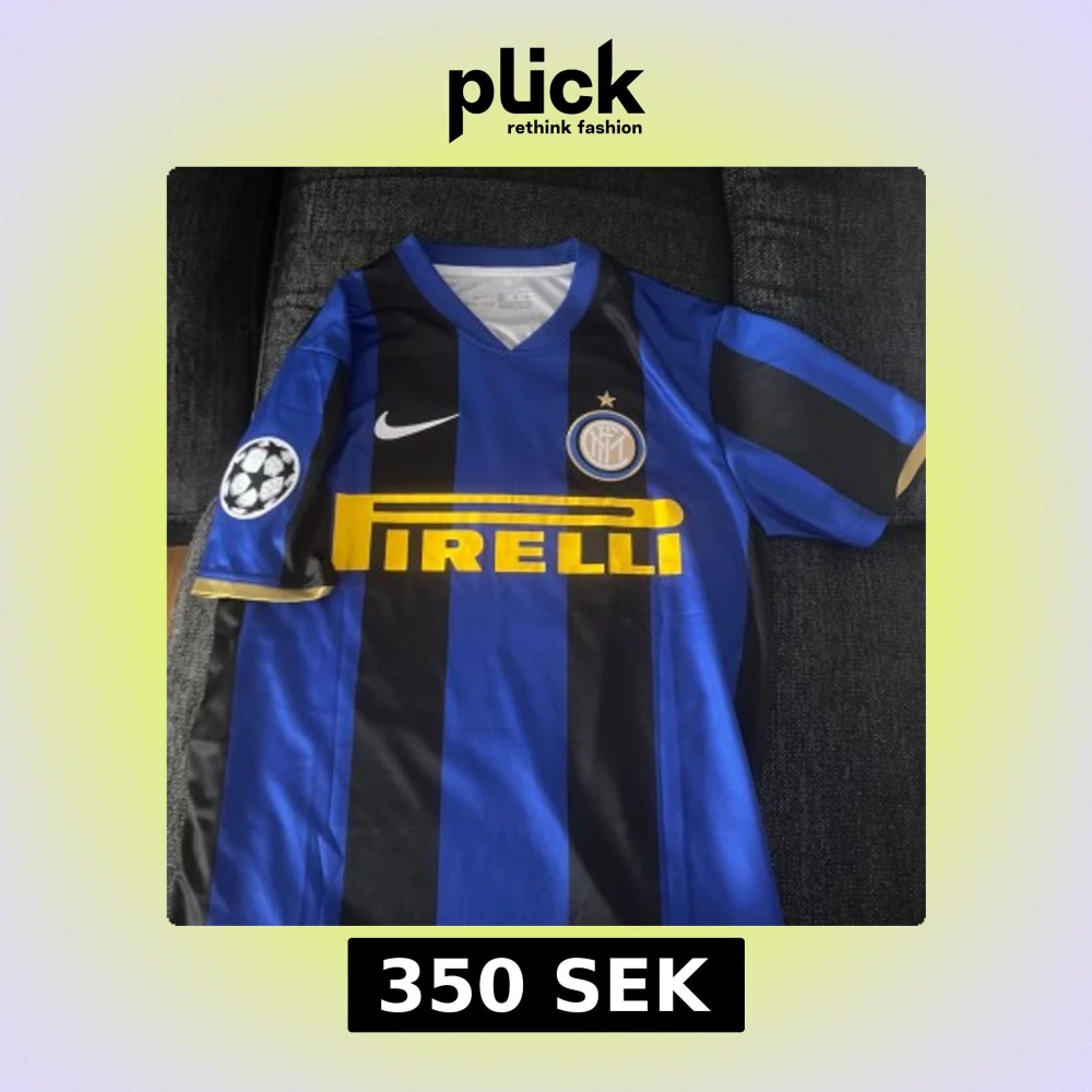 Inter Milan fotbollströja med Adriano #10 på ryggen. Klassisk blå och svart randig design, Champions League-märke på ärmen och Pirelli-logga i gult framtill. Tillverkad i lätt och ventilerande polyester, perfekt för match eller samling. Storlek M