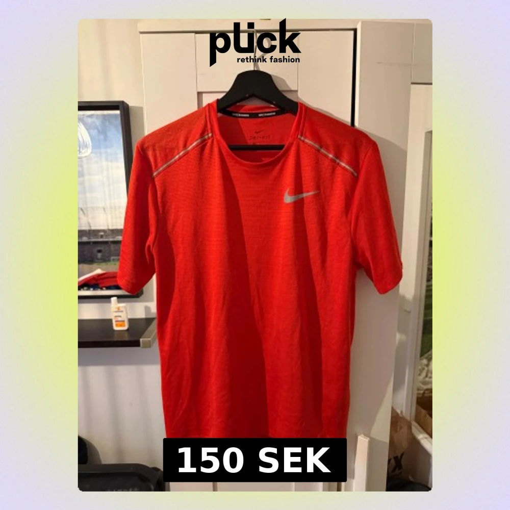Nike Dri-Fit t-shirt i stark röd färg med silverfärgad swoosh på bröstet och diskreta reflekterande detaljer vid axlarna. T-shirten har rund hals och är tillverkad i lätt polyester som andas, perfekt för löpning eller gym. Snygg och sportig look.