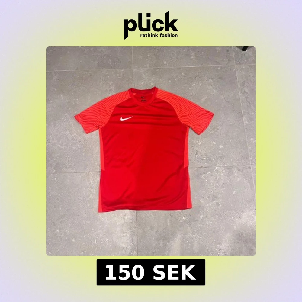 Nike Dri-Fit fotbollströja i rött med korta ärmar och slim fit-passform. Ärmarna har ett subtilt randigt mönster i en ljusare röd nyans. Tillverkad i funktionsmaterial som andas och håller dig torr under matchen. Klassisk vit Nike-logga på bröstet.
