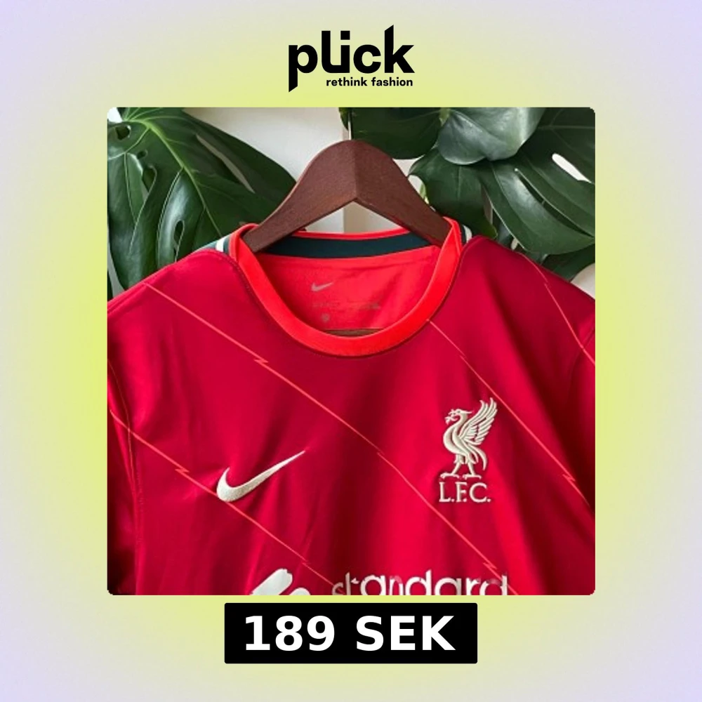 Liverpool FCs officiella matchtröja i rött med tunna diagonala linjer, broderad klubbmärke och Nike-logga på bröstet. Kortärmad modell med rund hals och orange detaljer vid kragen. Tillverkad i lätt och ventilerande material, perfekt för fotboll eller supporterliv.