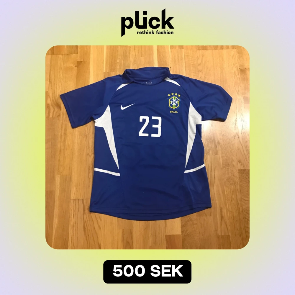 Säljer en blå Brasilien fotbollströja från Nike med nummer 23 och namnet Kaka' på ryggen. Tröjan är från Brasiliens borta tröja från vem 2002. Perfekt för fotbollsfans!