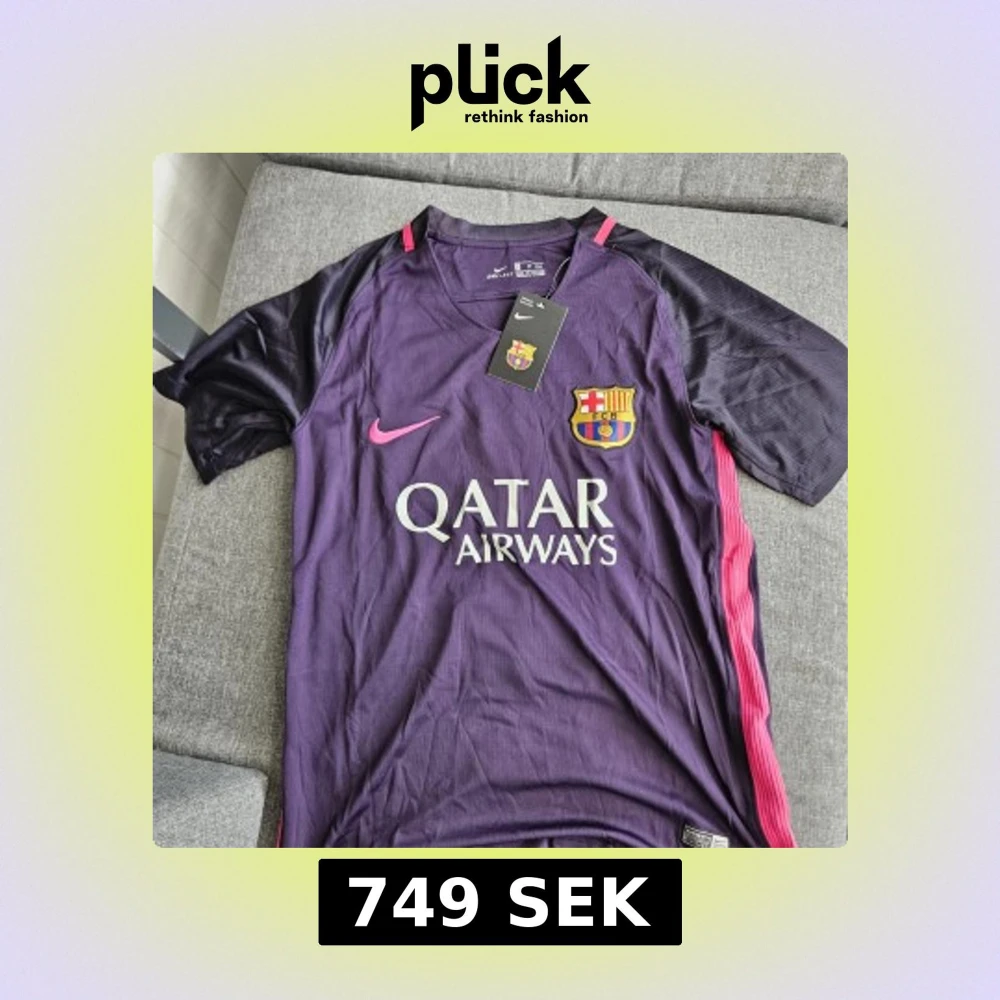 Säljer en lila FC Barcelona matchtröja från Nike med rosa detaljer och tryck. Tröjan har korta ärmar, klubbmärke på bröstet, Qatar Airways-tryck fram och Lamine Yamal 10 på ryggen. Tillverkad i lätt och ventilerande material, perfekt för fotboll eller träning.