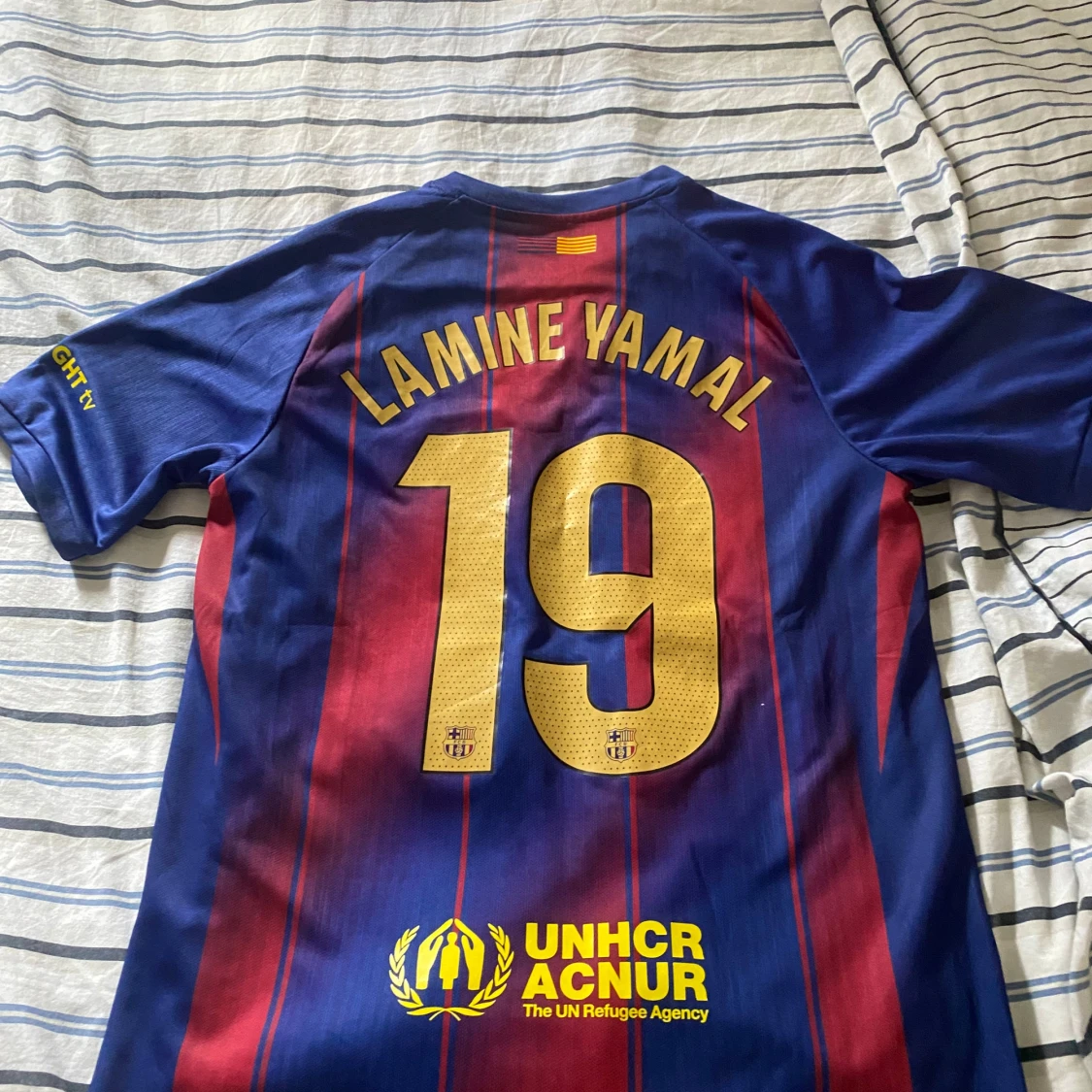 Säljer en FC Barcelona fotbollströja från Nike med Lamine Yamal och nummer 19 på ryggen. Har inte haft den utan bara testat