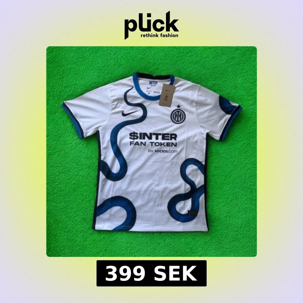Inter Milans officiella bortatröja från Nike i vitt med blå och svarta ormliknande detaljer. Tröjan har korta ärmar, rund hals med blå kant och tryckta loggor från Inter, Nike och sponsorer. Tillverkad i lätt och ventilerande Dri-FIT-material.