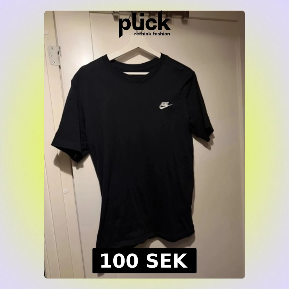 Klassisk svart t-shirt från Nike med vit logga på bröstet. Skön passform och tillverkad i mjuk bomull. Perfekt till jeans eller shorts för en clean och sportig look.