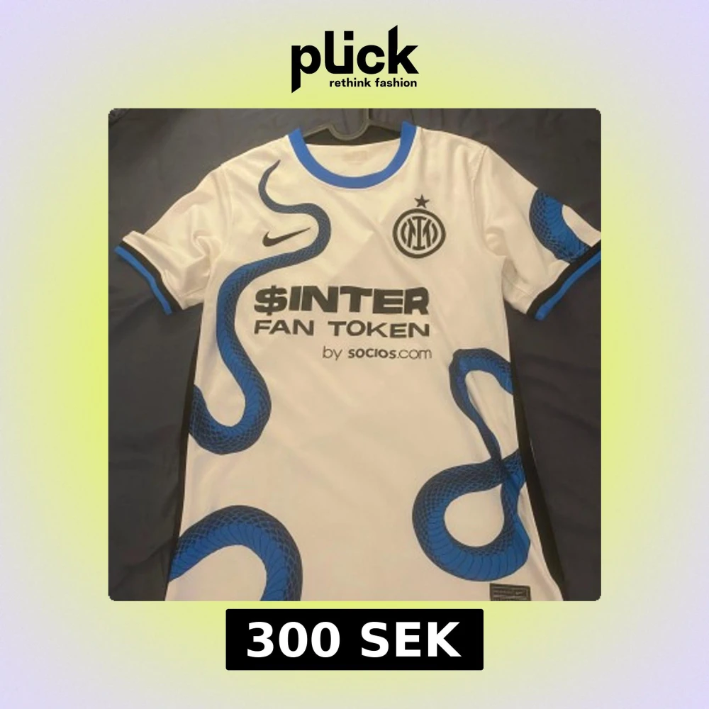 Inter Milans vita bortatröja från Nike med blå och svarta ormmönster längs sidorna. Tröjan har klubbmärke, sponsortryck och blå detaljer vid krage och ärmslut. Tillverkad i lätt och ventilerande material, perfekt för match eller träning.