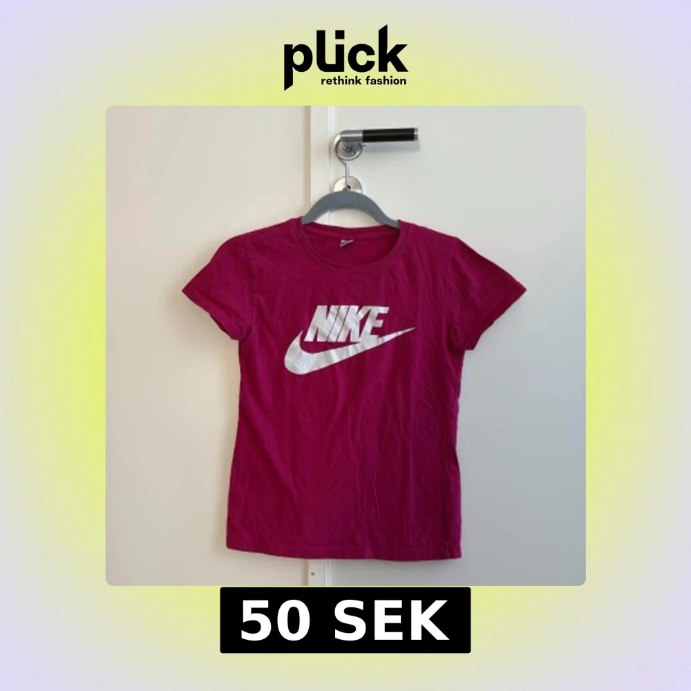 Rosa t-shirt från Nike med stor vit logga på bröstet. Klassisk rund hals och korta ärmar.