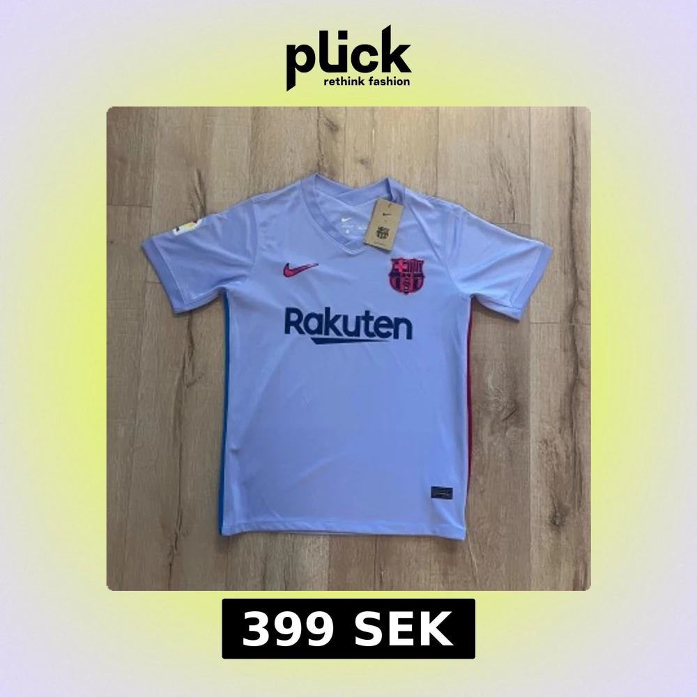 Säljer en ljuslila FC Barcelona matchtröja från Nike med korta ärmar och Dri-FIT material. Tröjan har klubbmärke i rött, Rakuten-tryck på bröstet och La Liga-patch på ärmen. Snygga blå och röda detaljer längs sidorna och UNICEF-tryck på ryggen.
