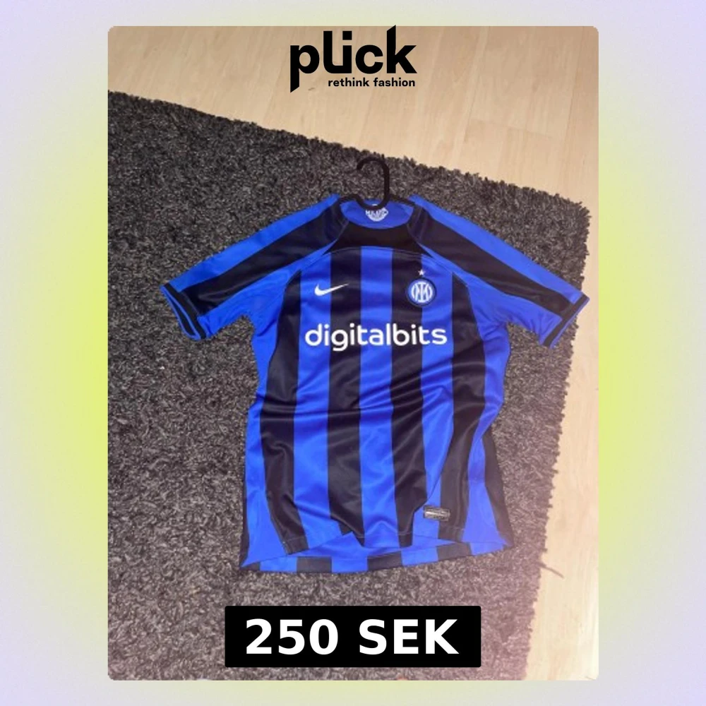 Inter Milan fotbollströja från Nike med klassiska blå och svarta vertikala ränder. Tröjan har klubbmärke och sponsortryck på bröstet samt korta ärmar. Tillverkad i lätt och ventilerande material.
