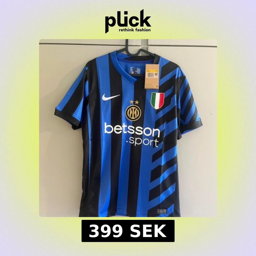 Inter Milan fotbollströja från Nike med klassiska blå och svarta ränder, klubbmärke och sponsortryck på bröstet. Kortärmad modell i lätt och ventilerande material, perfekt för match eller träning. Snygga detaljer med guldlogga och italienskt märke på bröstet.