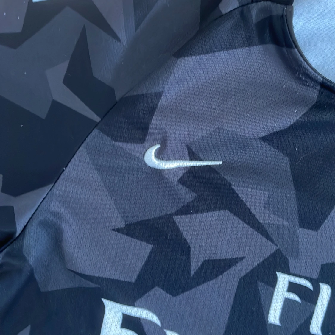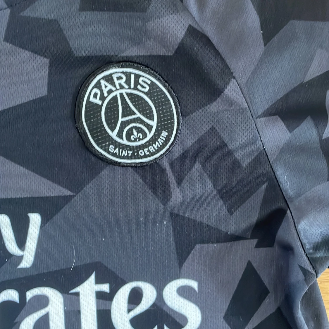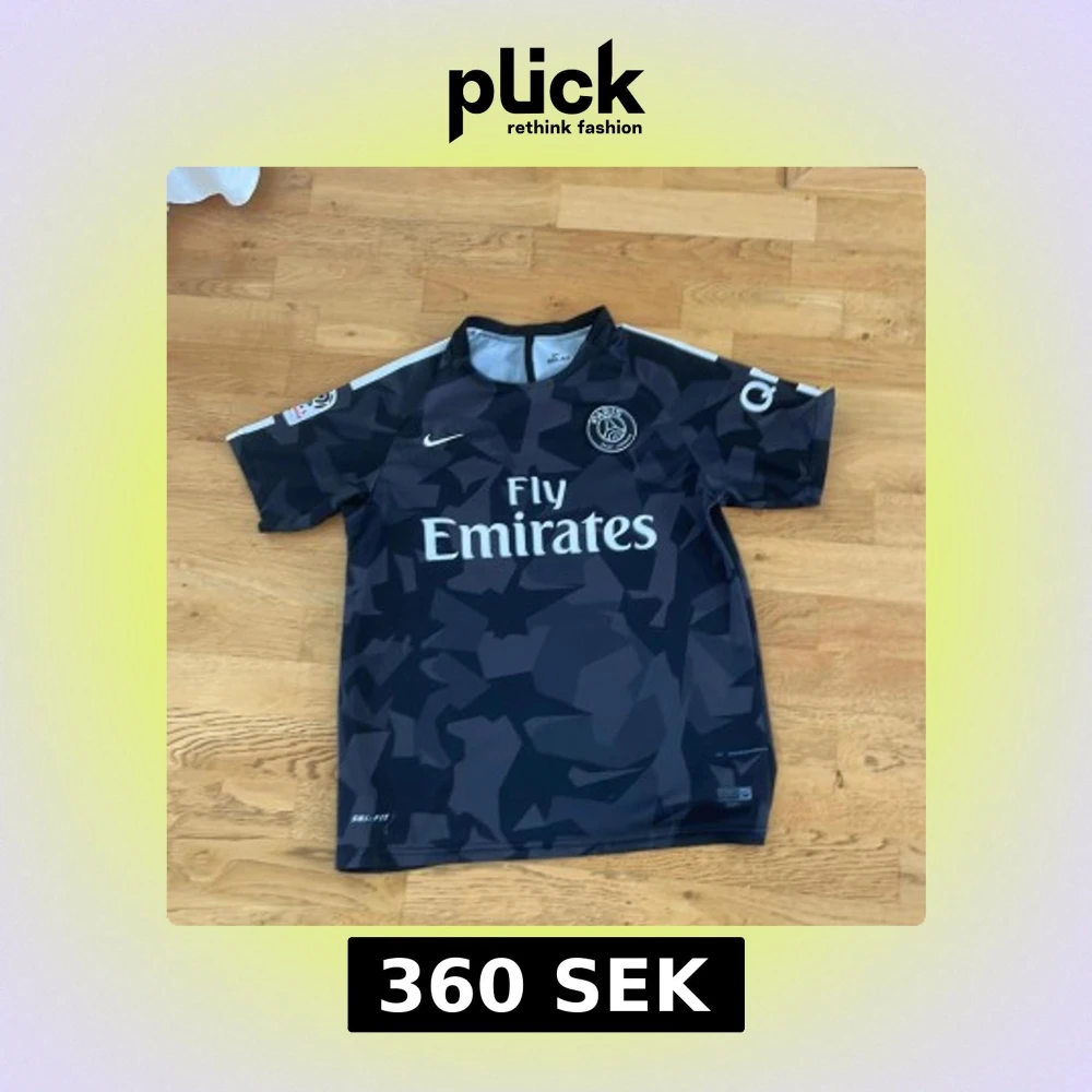 Snygg svart Paris Saint-Germain fotbollströja från Nike med vit logga och Fly Emirates-tryck. Tröjan har korta ärmar, camo-mönster och är tillverkad i Dri-FIT-material som andas. Perfekt för dig som vill sticka ut på planen eller på läktaren.