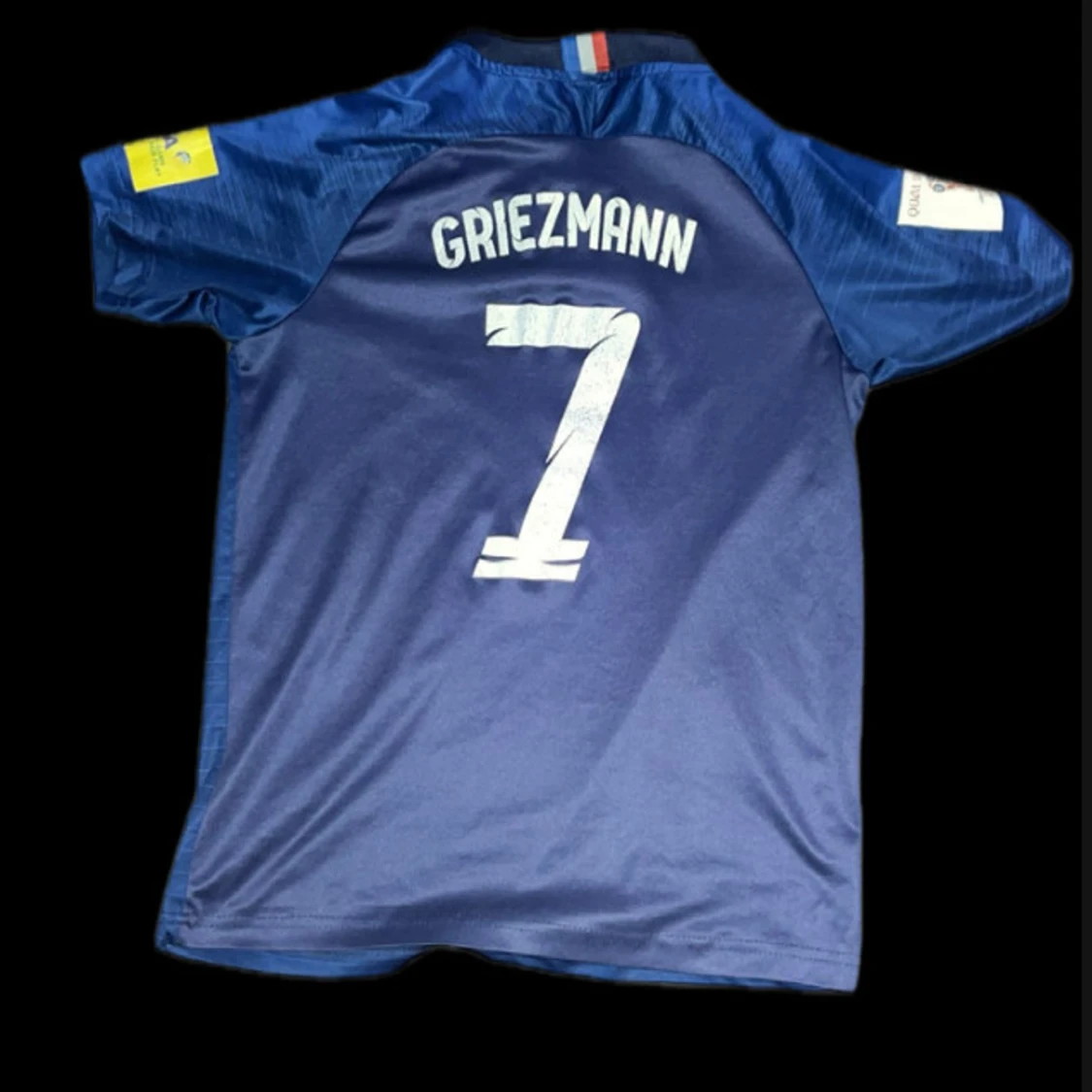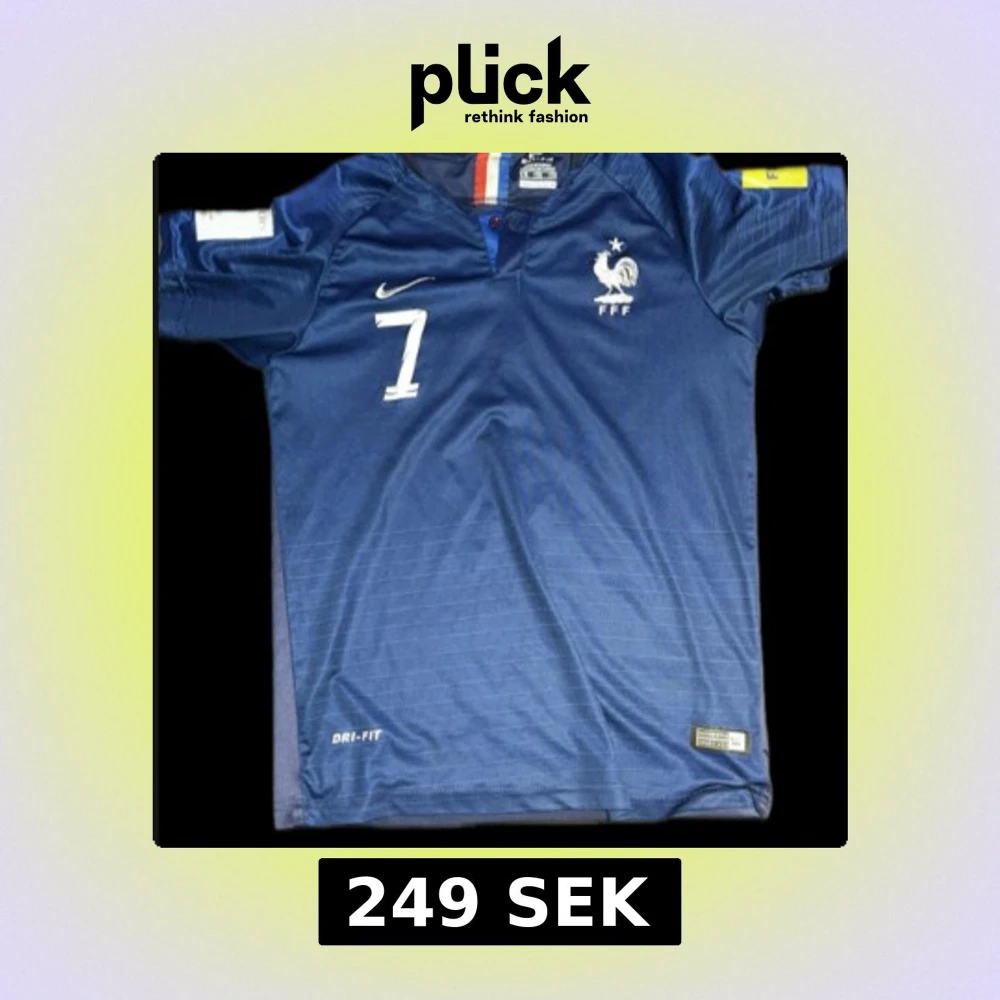 Säljer en officiell blå fransk landslagströja från VM 2018 med Griezmann och nummer 7 på ryggen. Tröjan har korta ärmar, FFF-logga, Nike-märke och FIFA Fair Play-patch. Tillverkad i lätt Dri-FIT-material som andas. Storleken är 176, den passar XS och S! Hör av dig vid frågor och funderingar