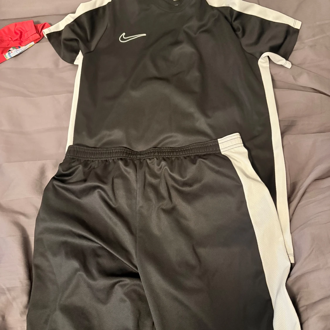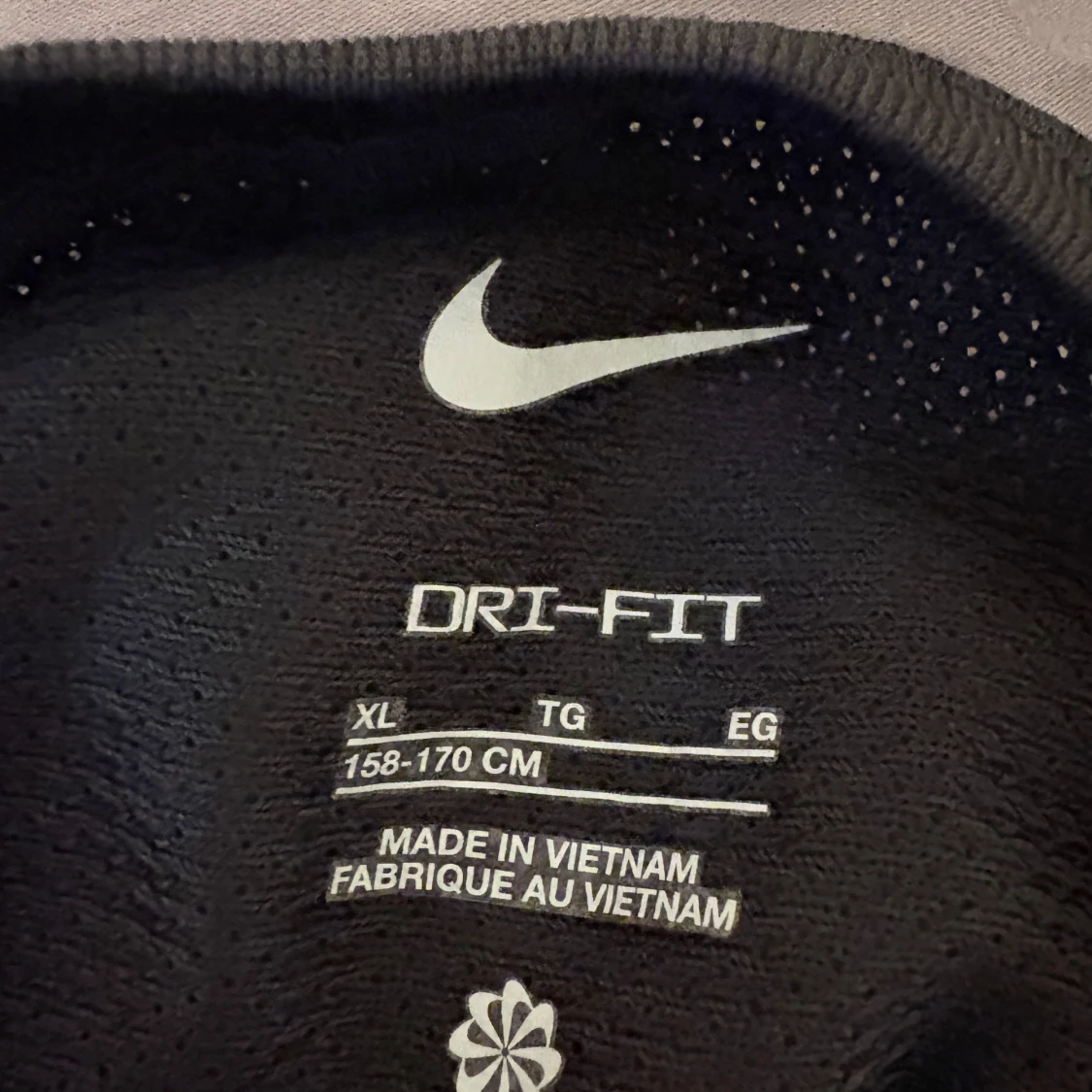 Snygg svart fotbollströja från Nike i Dri-FIT-material som andas. Tröjan har korta ärmar och vita paneler längs sidorna och axlarna. Perfekt för träning eller match, med klassisk Nike Swoosh på bröstet. Blivit för små för mig.