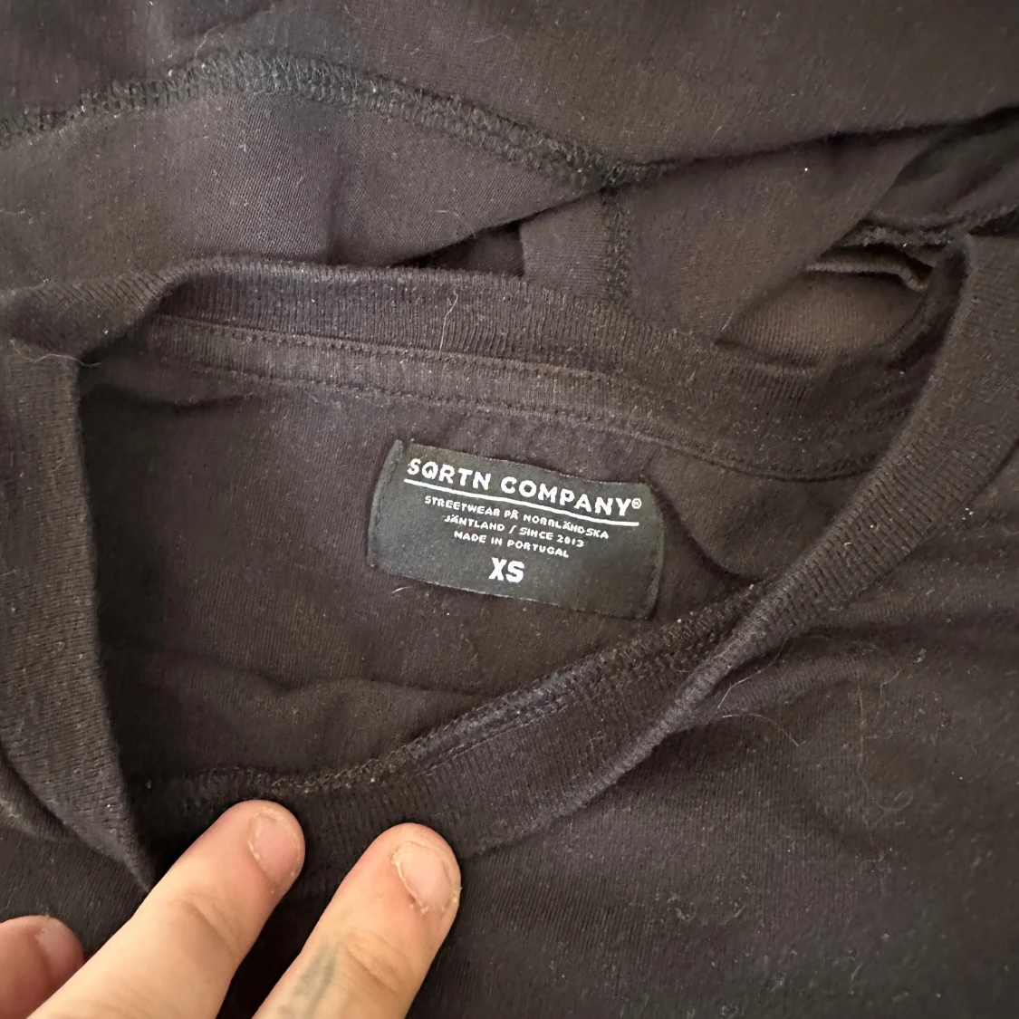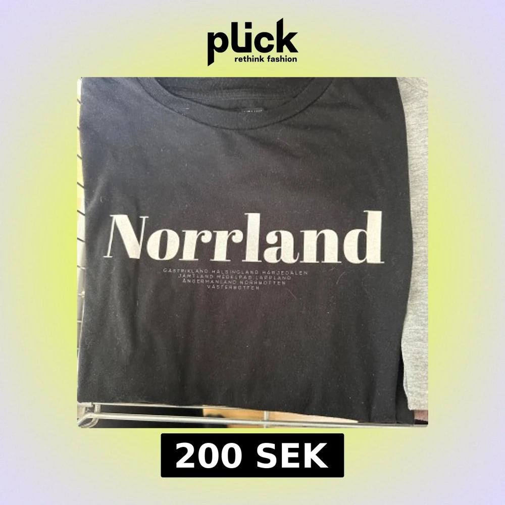 Svart t-shirt från Sortn Company med stor vit text 'Norrland' på bröstet och mindre text med norrländska landskap. Använd fåtal gånger