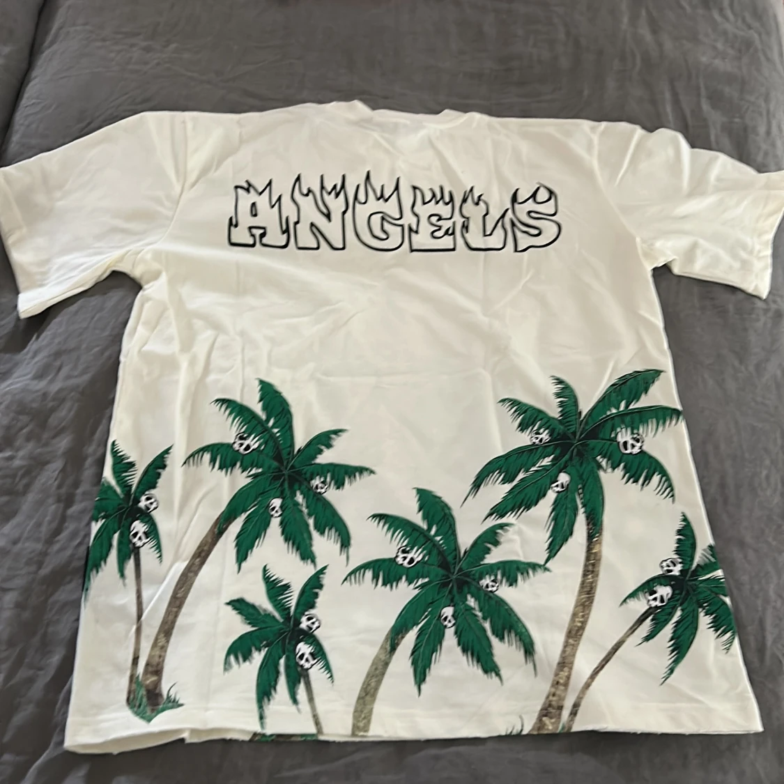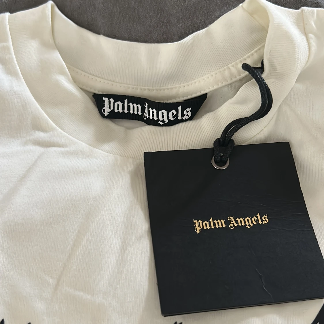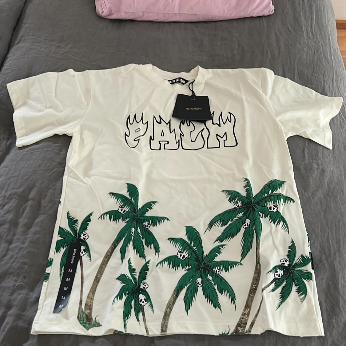 Hej, säljer denna Palm Angels T-shirten i storlek Medium, en perfekt och fet T-shirt till sommaren. Den är helt ny och taggarna sitter kvar, aldrig använd. Påsen medföljer. Kan gå ner i pris vid snabb handel, fraktar samma dag.