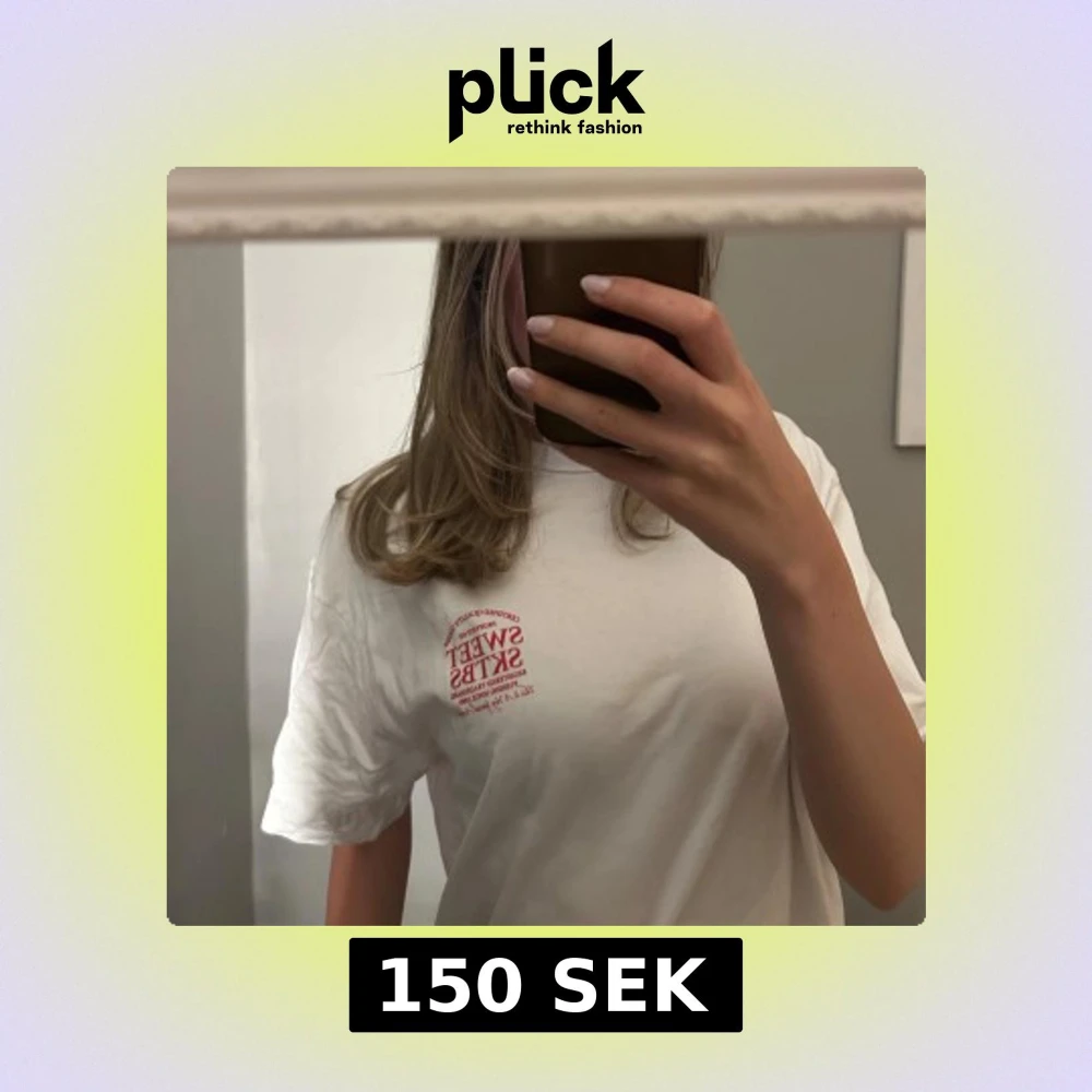 Vit t-shirt från Sweet SKTBS med röd tryckt text på bröstet och ryggen. Klassisk passform med rund hals och korta ärmar. Tillverkad i mjuk bomull, perfekt för en avslappnad streetstil.